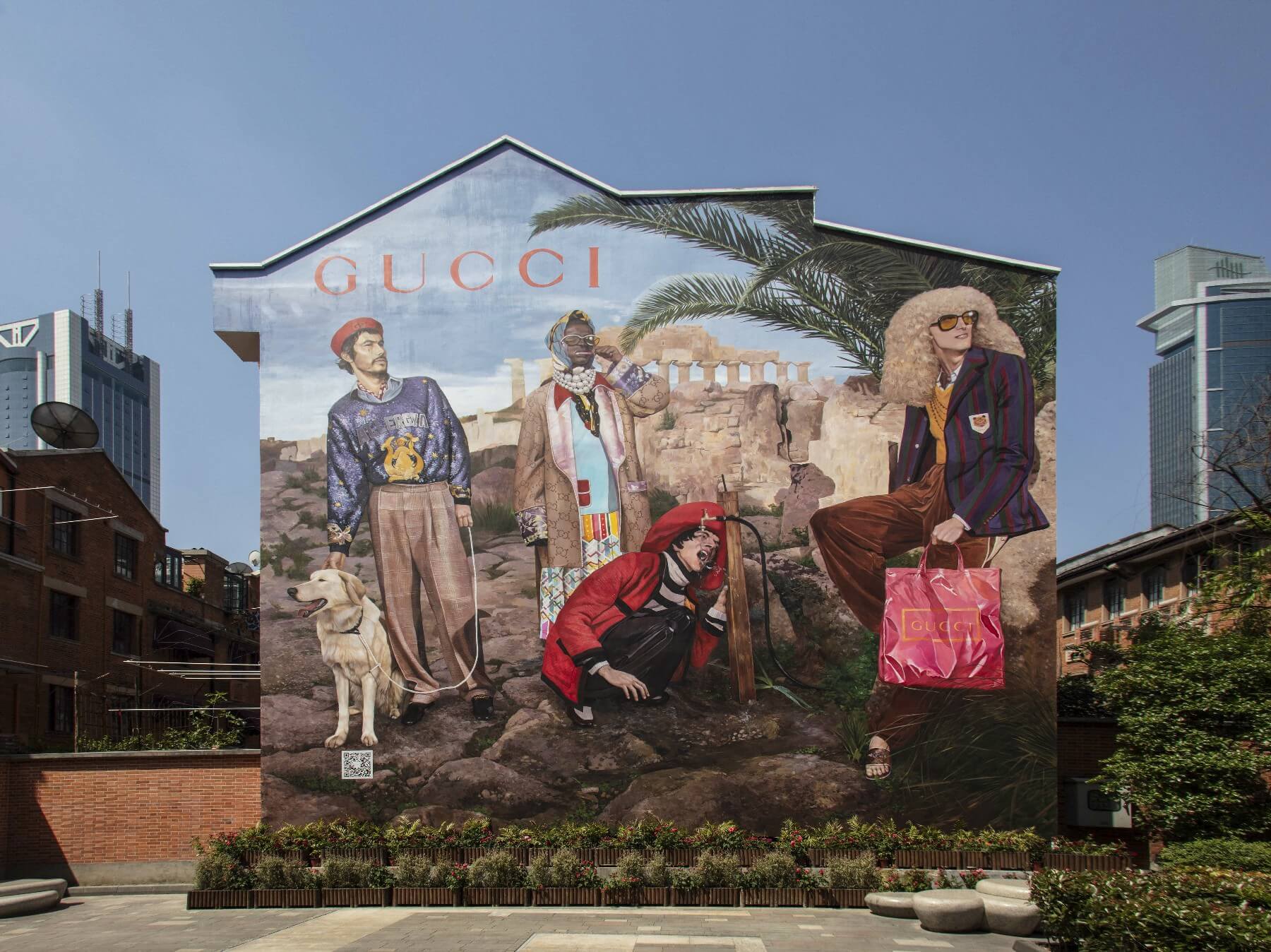 Муралы от Gucci — современная версия греческого пира, где друзья и любовники встречаются, чтобы обсудить философские и политические проблемы, прочитать стихи, заняться музыкой и спортом или потанцевать вместе. Это своеобразный аналог субкультурных групп, которые обычно можно увидеть на Венис-Бич в Калифорнии.