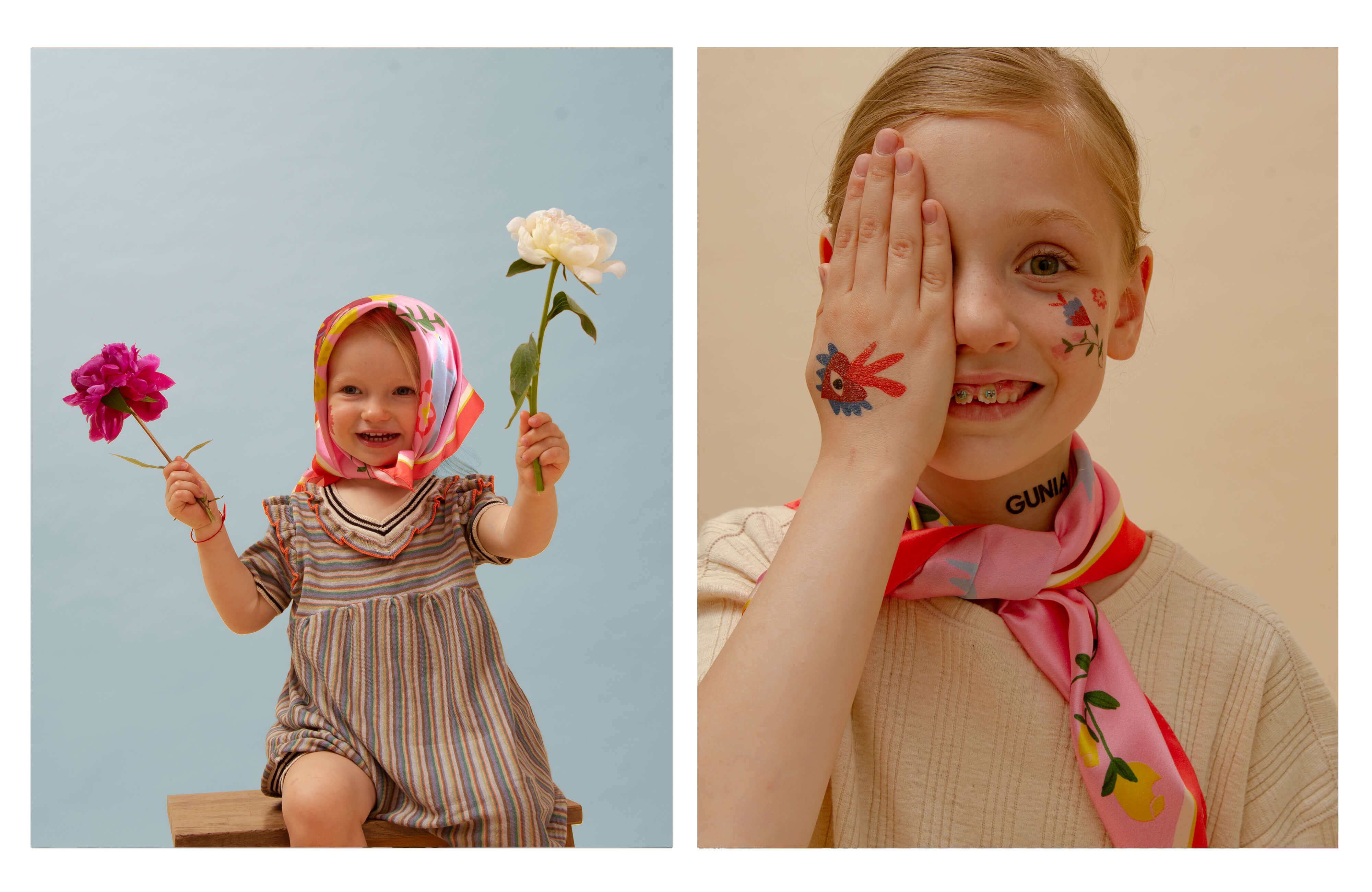 Специально к Международному дню защиты детей бренд Gunia Project представил новую коллекцию шелковых платков.