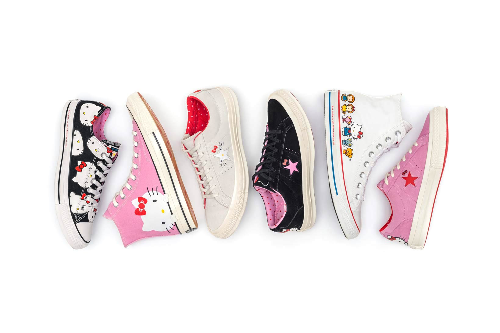 В коллекцию вошли кеды моделей Chuck Taylor All Star, Chuck 70 и One Star, а также свитшоты, худи, футболки и сумки с изображениями персонажей из мира Hello Kitty. Все предметы, созданные в коллаборации, отлично сочетаются между собой и могут стать прекрасным поводом поностальгировать по временам, когда Hello Kitty была на пике популярности.