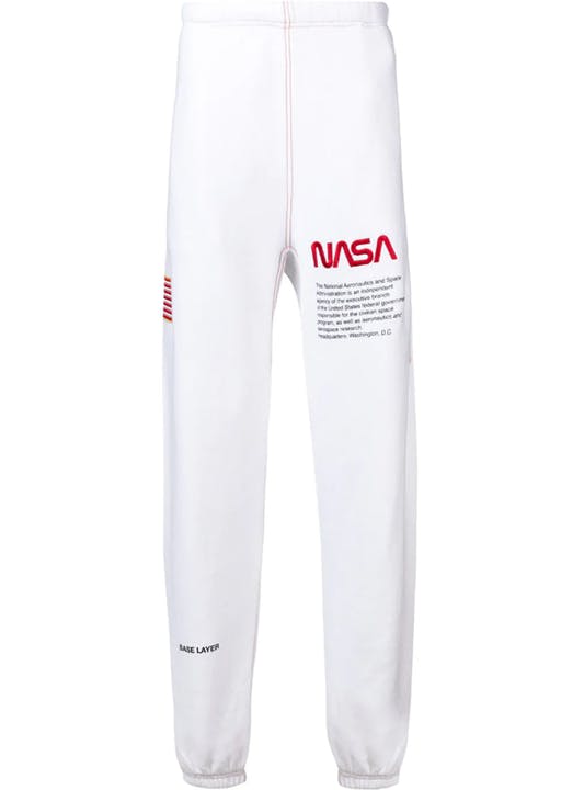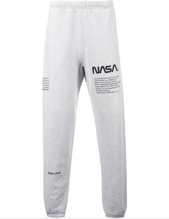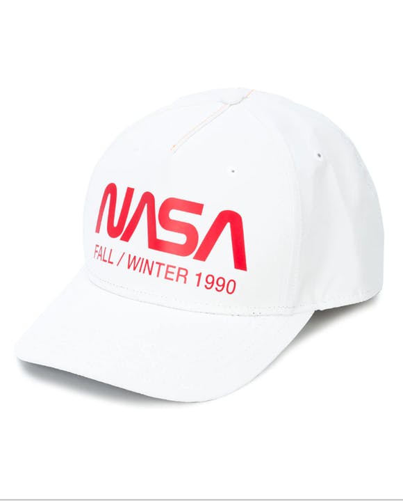 Капсула состоит из серебристых курток, простых белых футболок, свитшотов, спортивных штанов, носков и даже бейсболок — на каждом предмете гордо красуется логотип NASA и американский флаг.