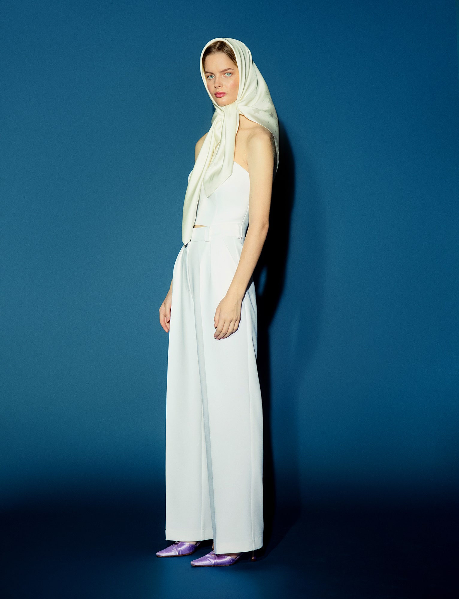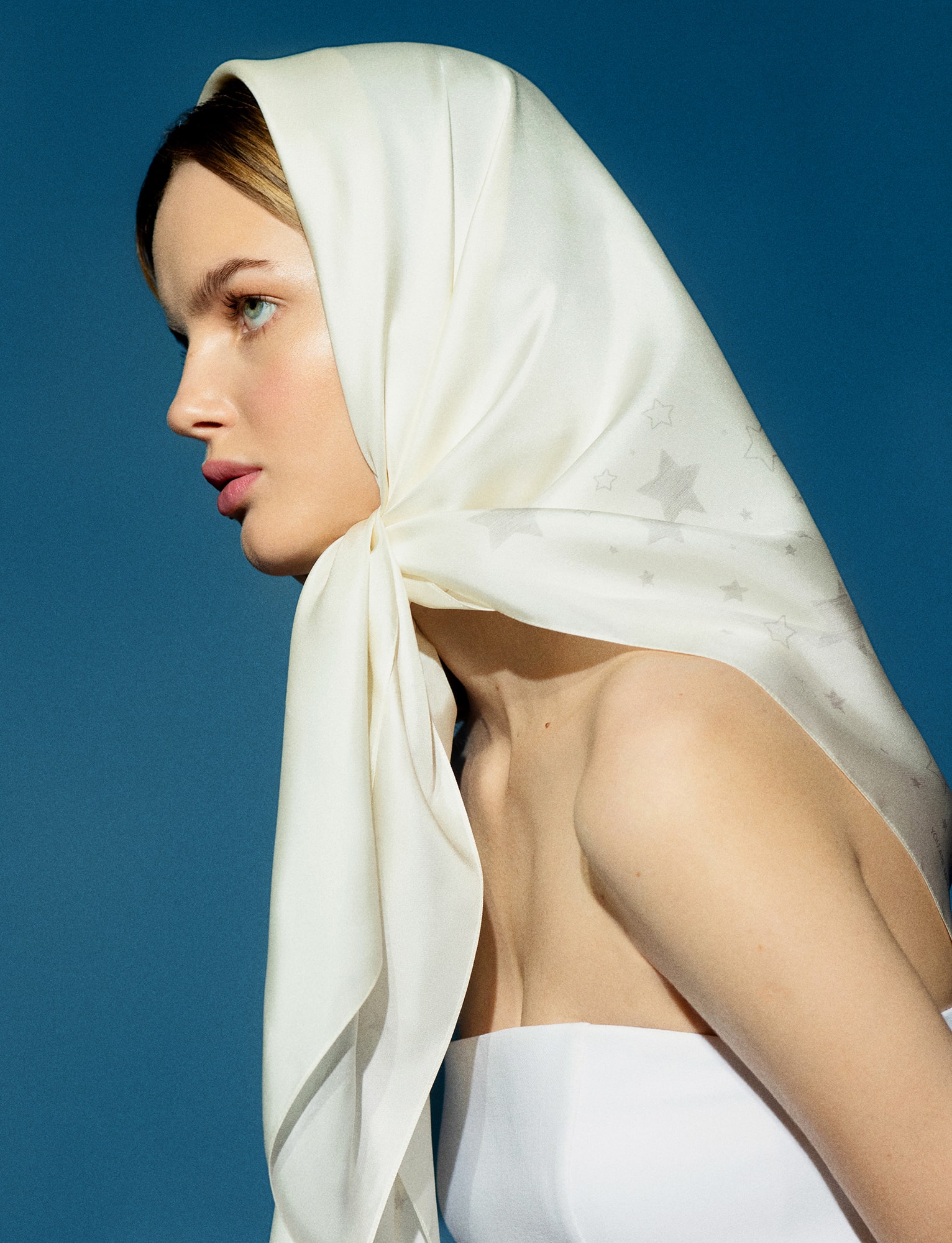 Два украинских бренда — Total White и Oliz — объединились для создания капсульной коллекции аксессуаров, приуроченной к Рождеству и Новому году. В нее вошли большой (100*100 см) и средний (65*65 см) платки, шаль (которую также можно использовать в качестве пояса или головного убора), твилли и резинка для волос из натурального шелка с плетением твилл, в лучших традициях Oliz и в обязательном для Total White белом цвете.