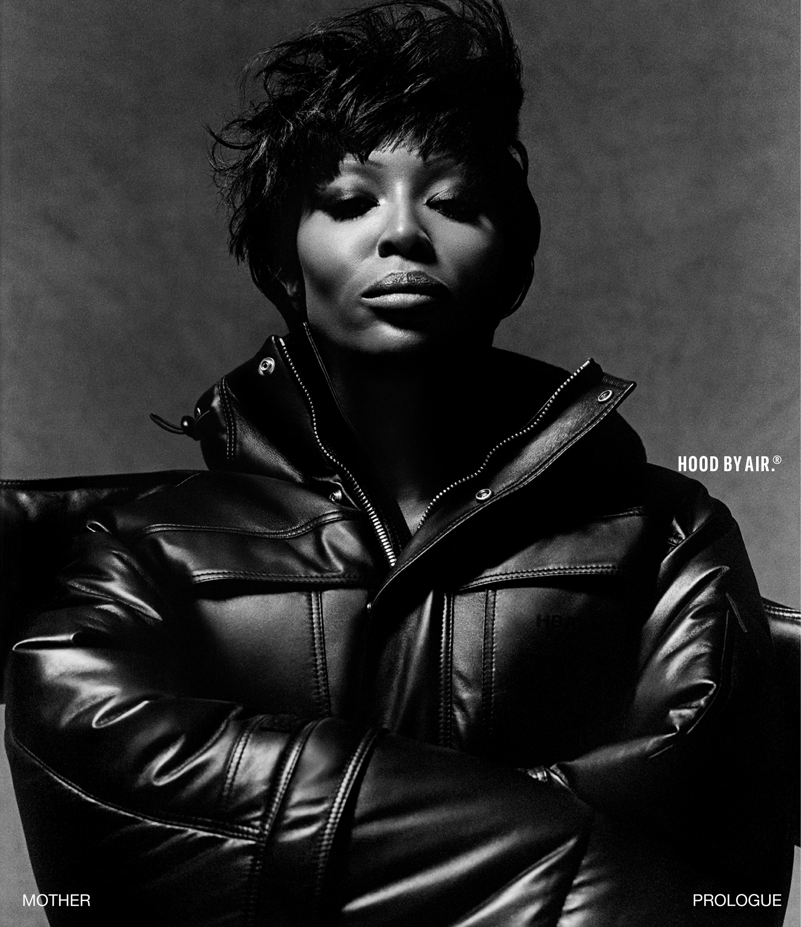 На снимках фотографа Луиса Альберто Родригеса супермодель запечатлена в одежде из предстоящей коллекции под названием Prologue от Hood By Air. Коллекция будет представлена в 3-х частях: Mother, Veteran и Merch. Коллекция Mother — дань уважения материнским образам в жизни Оливера. Среди них его бабушка, которая привила ему любовь к дизайну и красоте, и Наоми, которая стала ментором для многих людей.