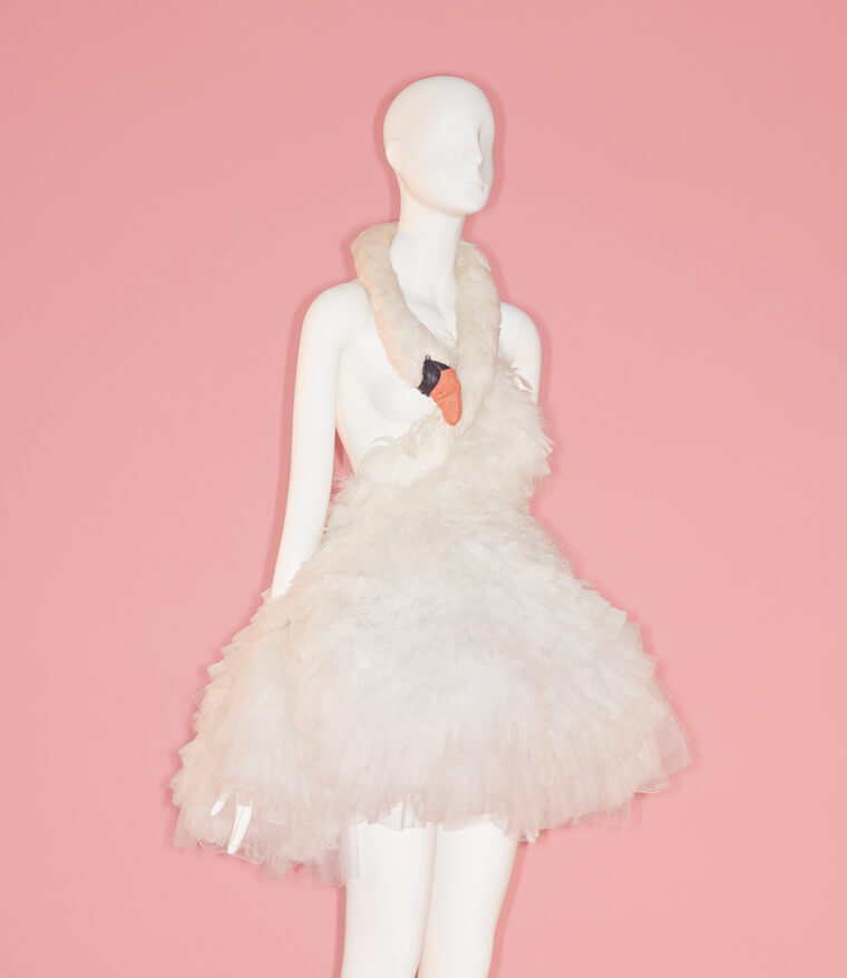 Картина последнего монарха Франции Людовика XIV, непристойные рисунки друга Оскара Уайльда, художника Обри Бердслея, платья с перьями на движущихся платформах, кепки-уточки Стивена Джонса — только малая часть коллекции, которая призвана раскрыть тему выставки "Кэмп: заметки о моде".