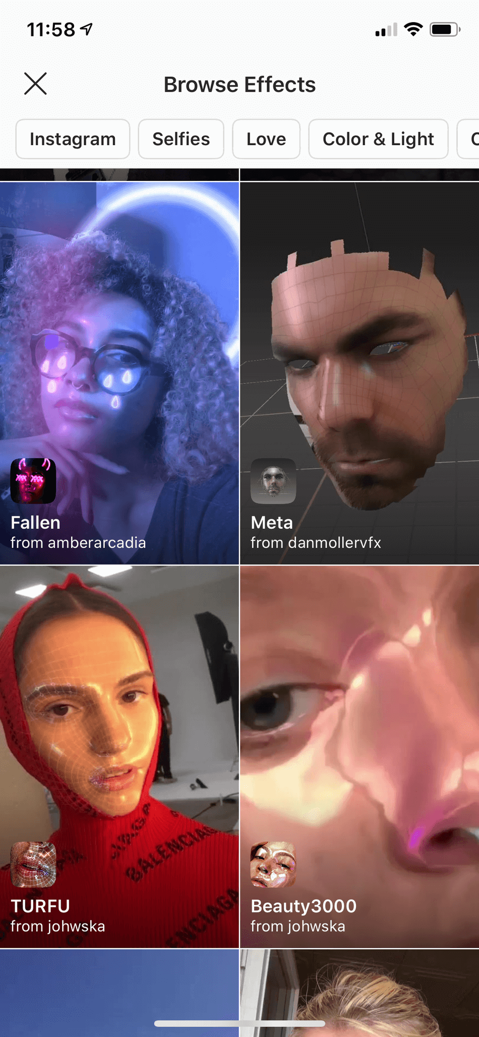В Instagram появились фильтры и маски дополненной реальности, которые позволяют любому пользователю добавлять эффекты в свои stories. Инструмент Spark AR ранее был доступен только пользователям Facebook.