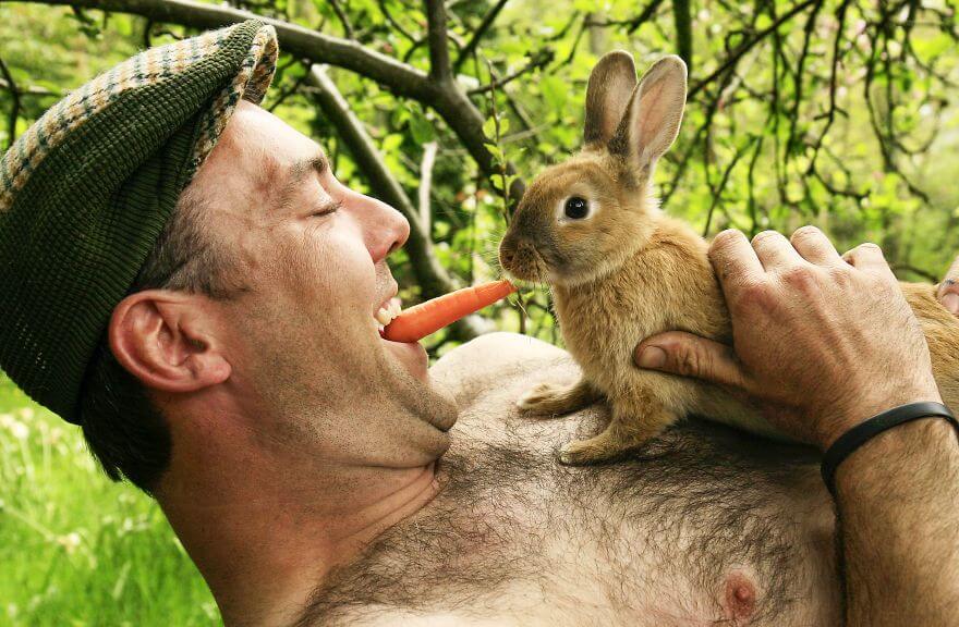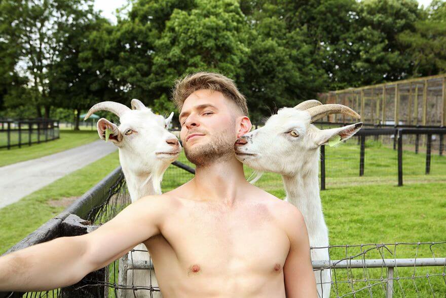 На фотографиях календаря полуголые мужчины в дениме и традиционных фермерских шляпах позируют с козлятами, курами, овечками и другой живностью. Фермер, который украшает ноябрь, разделяет морковку с кроликом, сентябрь — вяжет плед из овечьей шерсти, а майский мужчина делает селфи с козленком.