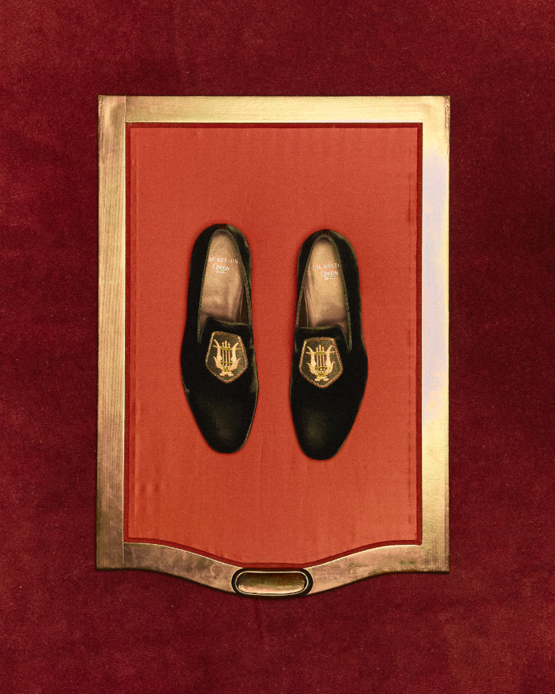 Взуття з колаборації доповнюється знаковими деталями інтер’єру Паризької опери: оксамитом, вишивкою в вигляді золотого сонця, яке символізує Короля-Сонця, Людовіка XIV, що заснував будівлю в 1669 році, а також ліри, які прослідковувалася в дизайн-проєкті французького архітектора Шарля Гарньє.