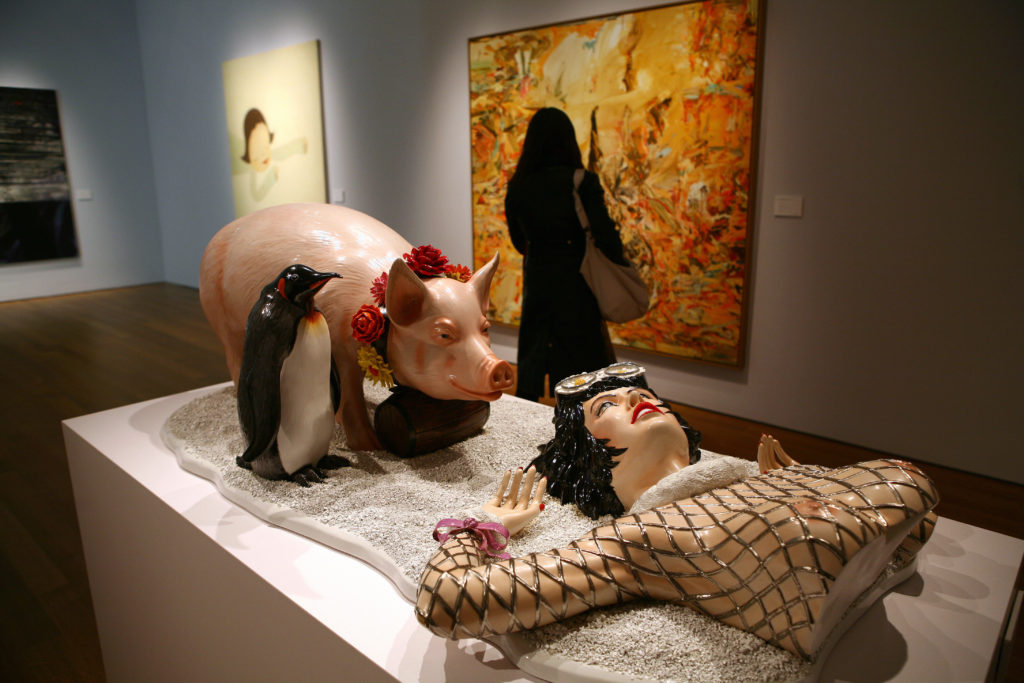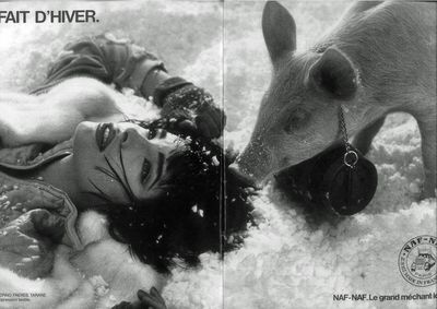 Суд над одним из главных современных художников длился четыре года и в итоге признал Кунса виновным в плагиате. Французский специалист по рекламе Фрэнк Давидовичи в 1985 году создал рекламную кампанию Fait d’hiver для бренда Naf Naf. На фото свинья, которая является символом бренда, с бутылкой виски на шее приходит на помощь девушке, которая застряла в снежном шторме. В 1988 году Джефф Кунс представил скульптурную работу с таким же названием из фарфора, демонстрирующую аналогичный сюжет. Правда, в роли девушки выступила итальянская порнозвезда и бывшая жена художника Илона Сталлер, на которой вместо куртки был надет сетчатый топ, на шее у свиньи болталась не фляга с виски, а цветочная гирлянда, и композицию дополнял пингвин.