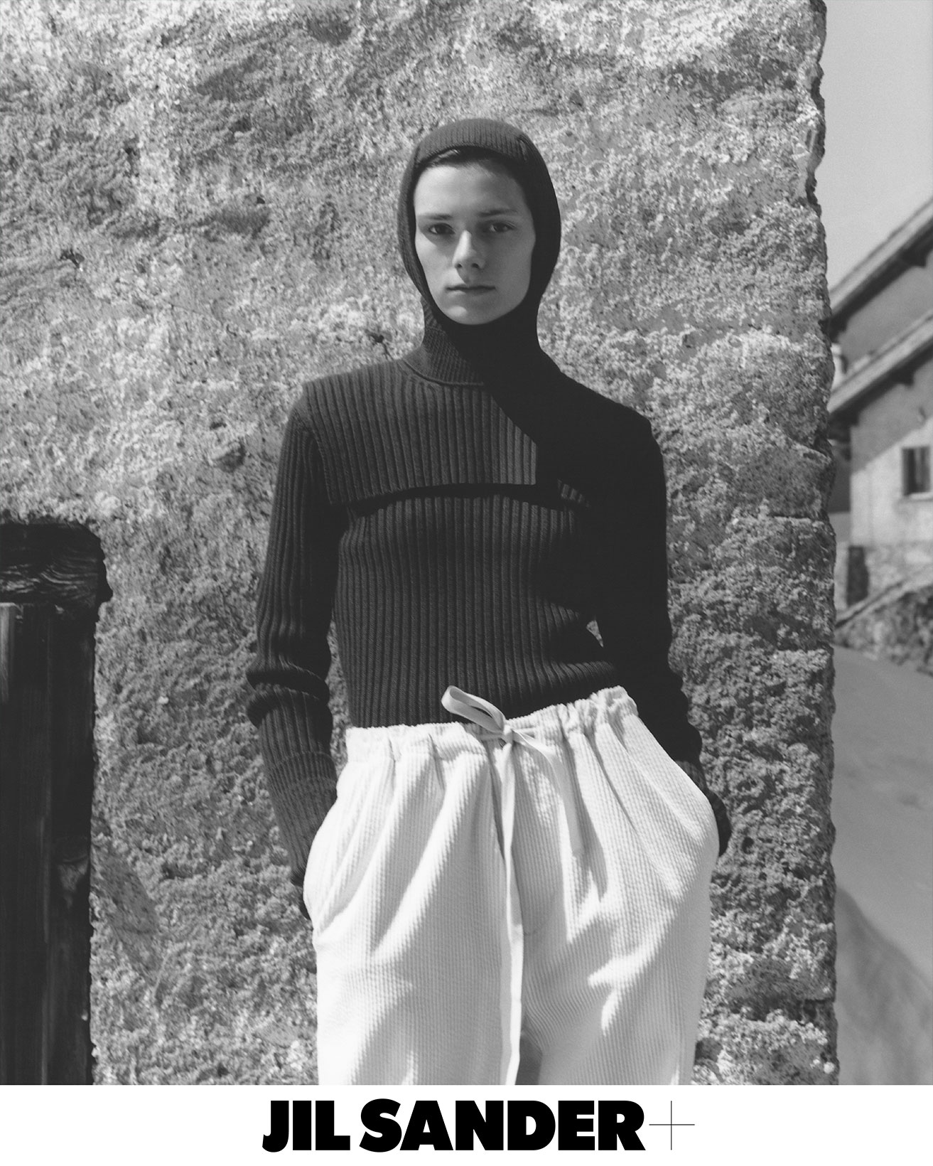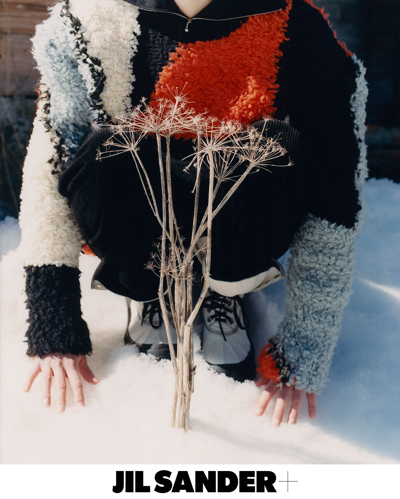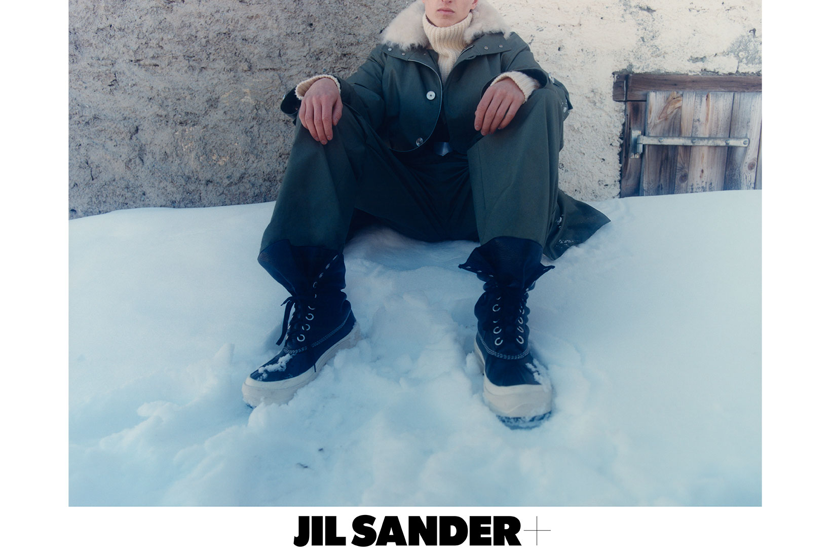Jil Sander выпустили рекламную кампанию второй линии. Реклама Jil Sander+ посвящена осенне-зимней коллекции. Съемки кампейна проходили в заснеженных Швейцарских Альпах.