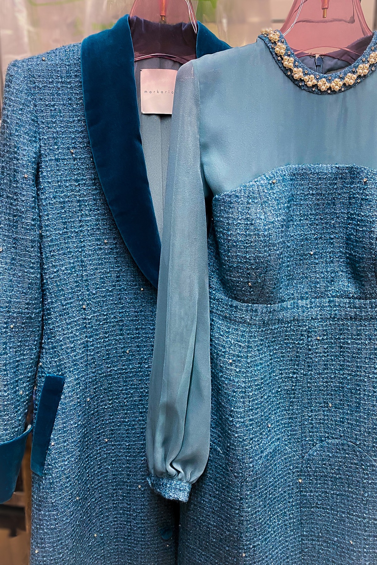 Также Александра О’Нил рассказала, что за вдохновением обратилась к образам Грейс Келли и других первых леди Америки. Что касается яркого цвета, то синий – успокаивающий, он символизирует доверие, уверенность и стабильность.