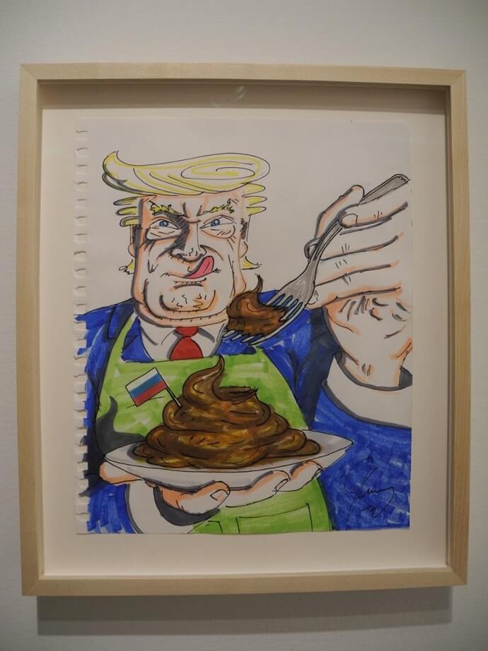 Также актёр довольно часто рисует карикатуры на известных личностей, которые публикует на своей странице в инстаграме. За время своей художественной деятельности Джим Керри нарисовал десятки карикатур на президента США Дональда Трампа и его администрацию. А в 2018 году в галерее Maccarone в Лос-Анджелесе прошла целая выставка актёра, в которой насчитывалось более 100 рисунков.