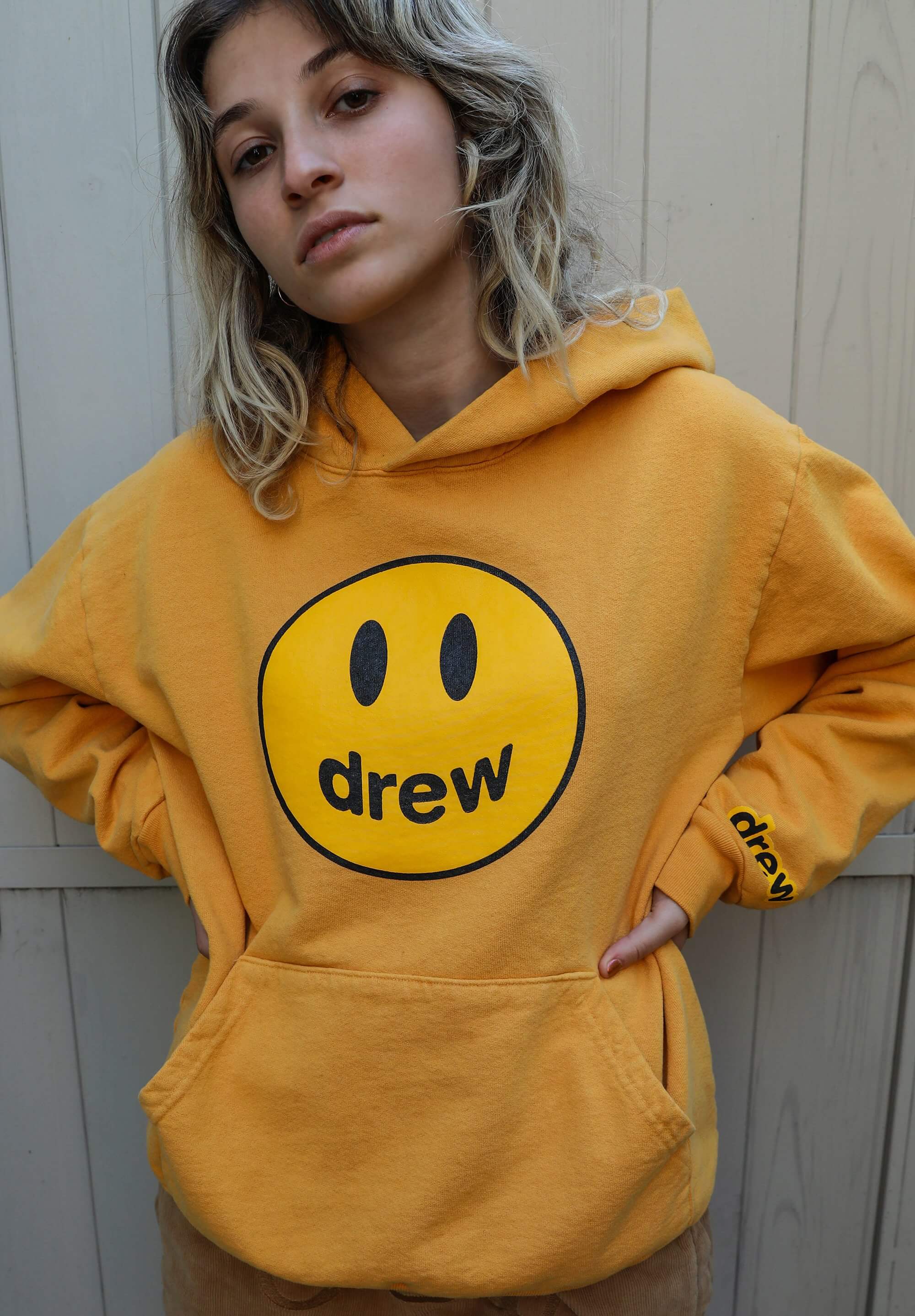 Первыми под брендом Drew Джастин Бибер выпустил отельные тапочки со смайликом по цене $ 5, которые были раскуплены сразу после дропа.