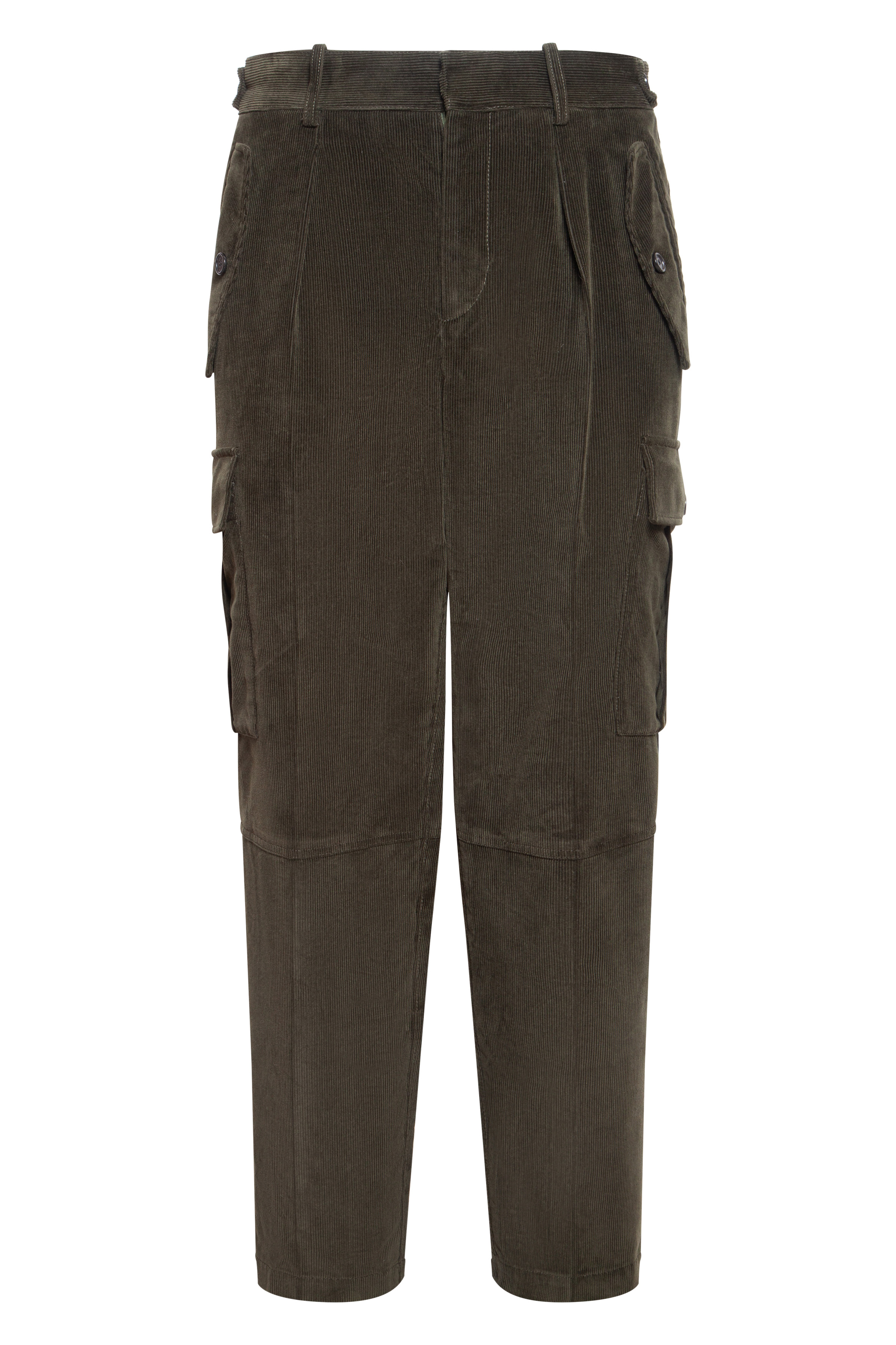 В коллекцию вошло 10 предметов гардероба, среди которых рубашки, плиссированная юбка, брюки и тренч из вельвета, худи в полоску, сумки из кожи и фетровые лоферы. В цветовой гамме преобладают хаки, бежевый, серый и бордовый.
