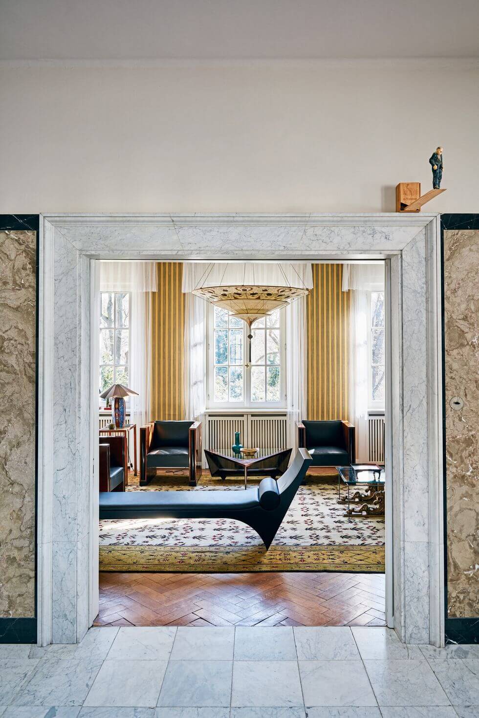 Трехкомнатную виллу построили в 1920-х годах в римском стиле. Классические интерьеры с колоннами Карл дополнил современными предметами дизайна и искусства. В 2018 году дизайнер выставил дом на продажу за $ 11,6 миллиона.