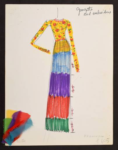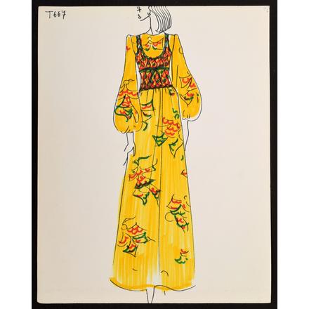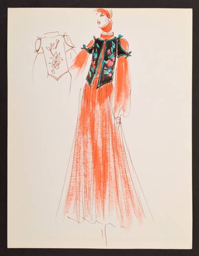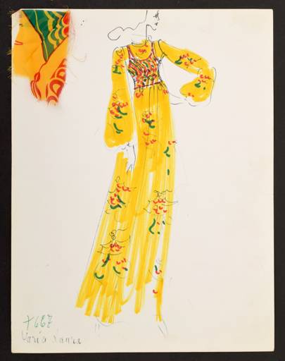Карл создал эти эскизы для таких известных женщин, как Элизабет Тейлор, Дорис Дьюк и Джина Лоллобриджида, во время своей работы в итальянском Доме моды Тизиани в 60-х годах.