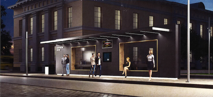 Существующие выходы закроют. Зайти в подземку можно будет только в одном месте, обустроенном в виде пандуса. Остановки будут выглядеть как сплошные стены с навесом и двумя широкими окнами, где также расположатся места для сидения.