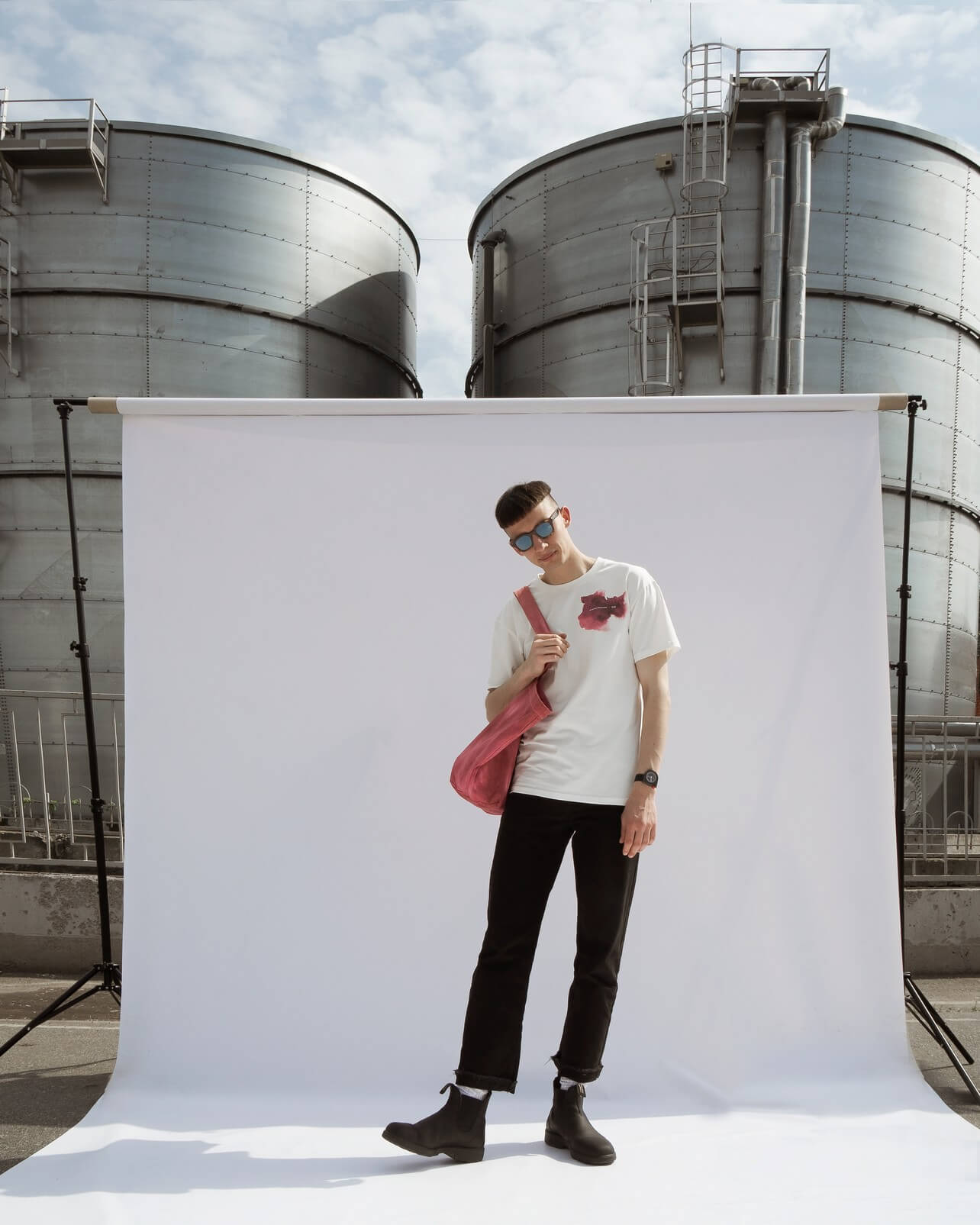 Линейка состоит из футболок, панам, сумок со специальными отделениями для бутылок вина и пончо-пледов из плотного денима. Все вещи из необычной коллаборации примерили на себя лидеры мнений, и они же стали героями кампейна — Валерий Созановский, Сергей Созановский и Ирина Костюк, Руслан Багинский и Петр Ясинский, Василий Гроголь, Слава и Лена Балбек, Рита Мурадова, команды Public Kitchen и GoodWine. Стилизацией съемки занималась Ксения Шнайдер, а снимки сделала фотограф Наталья Иванова.