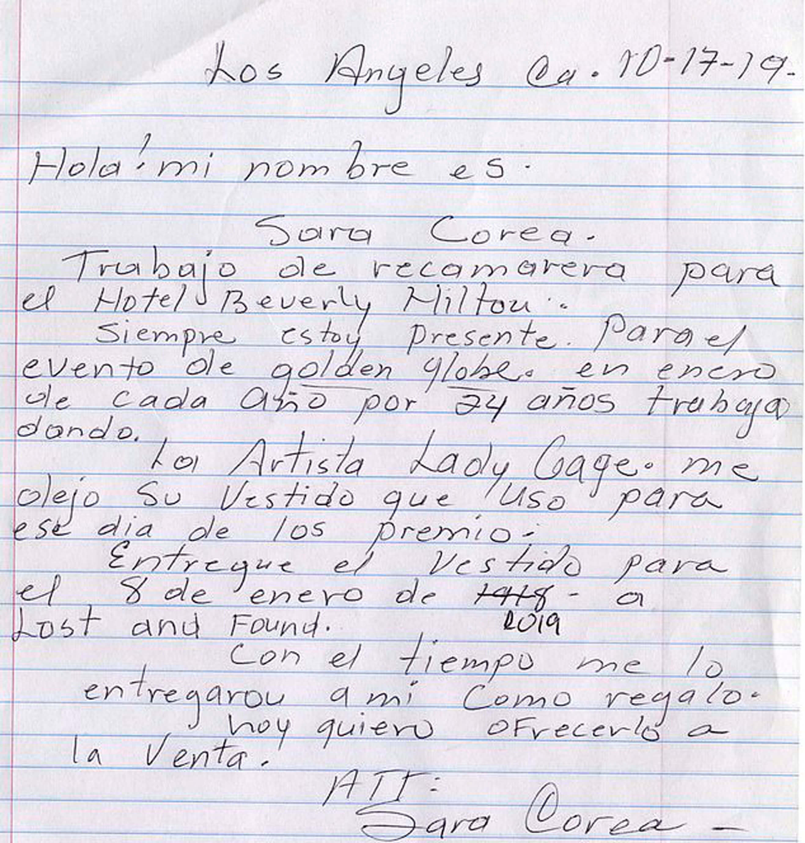 Сара Кореа решила выставить наряд на аукцион. Стартовая цена лота составила $ 8 000. К лоту горничная приложила письмо-объяснение, в котором описала, как к ней попало это платье.