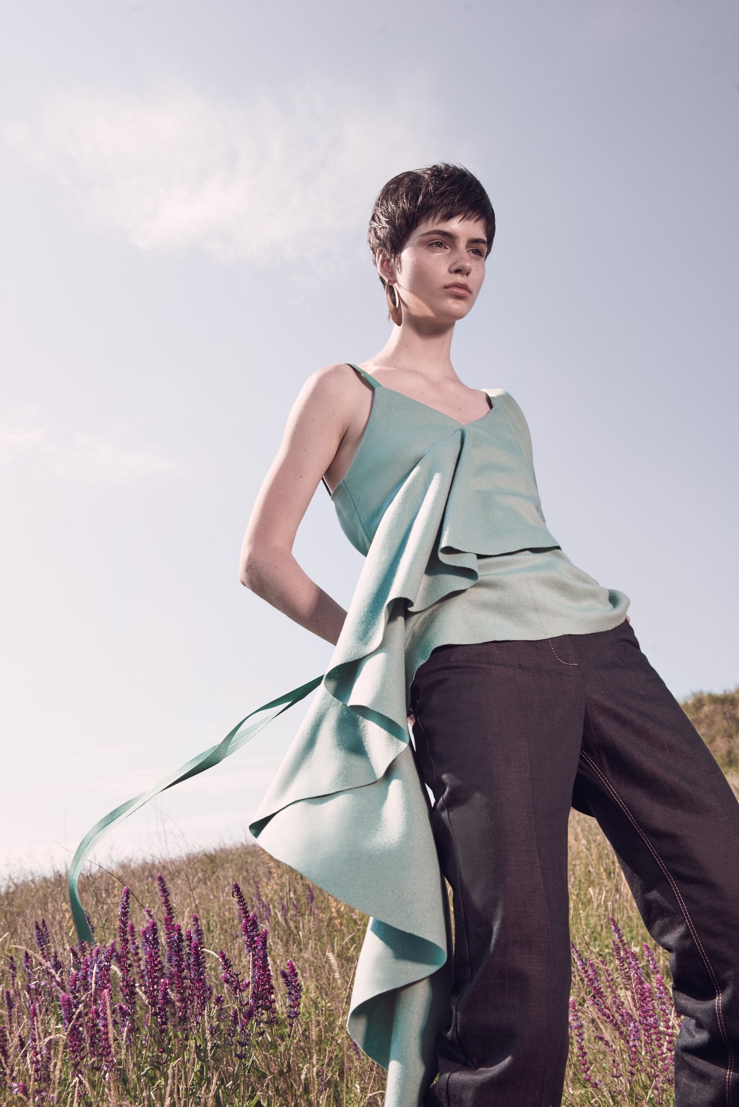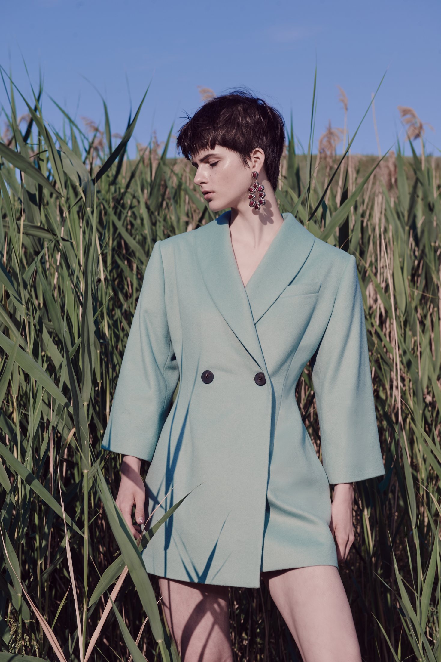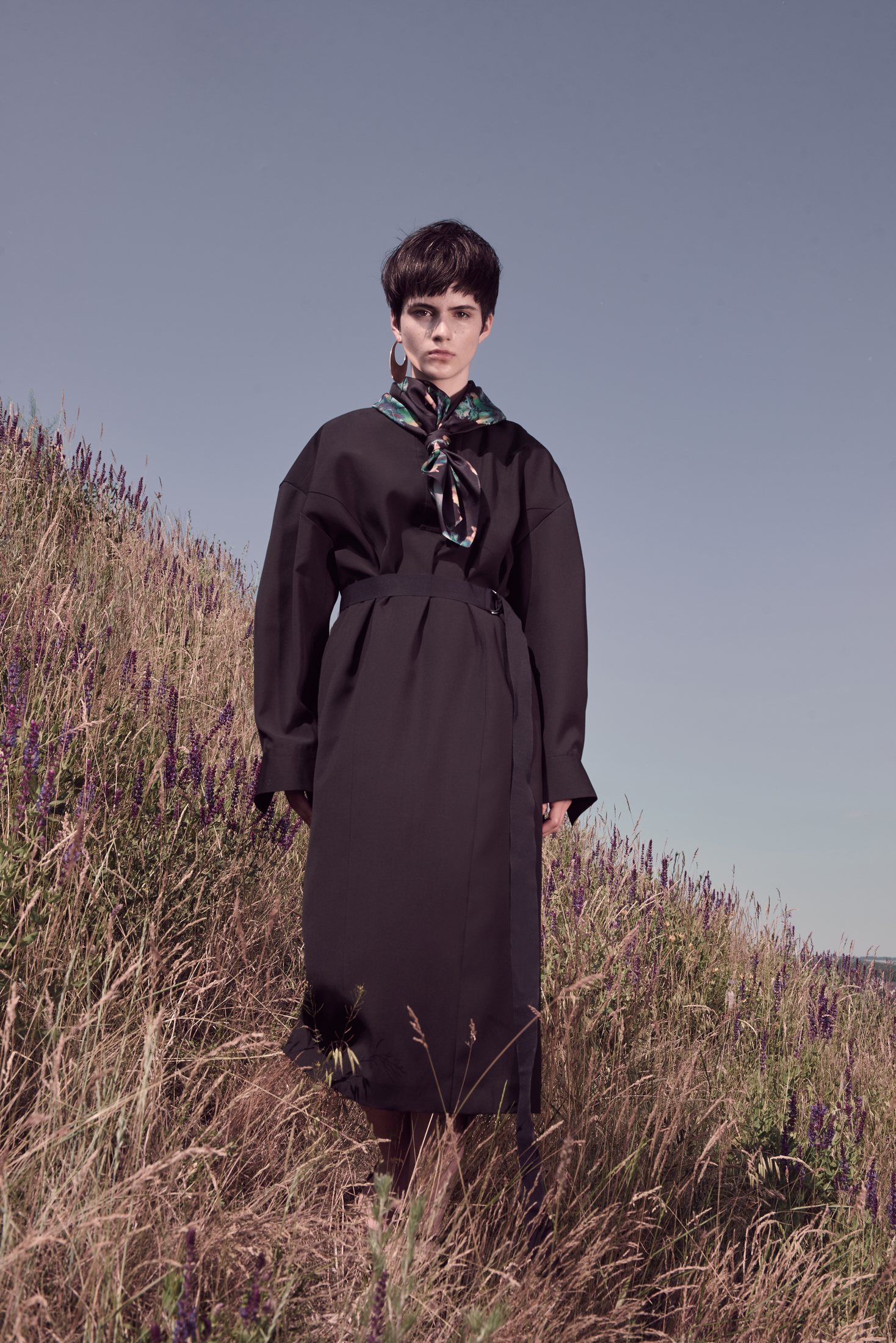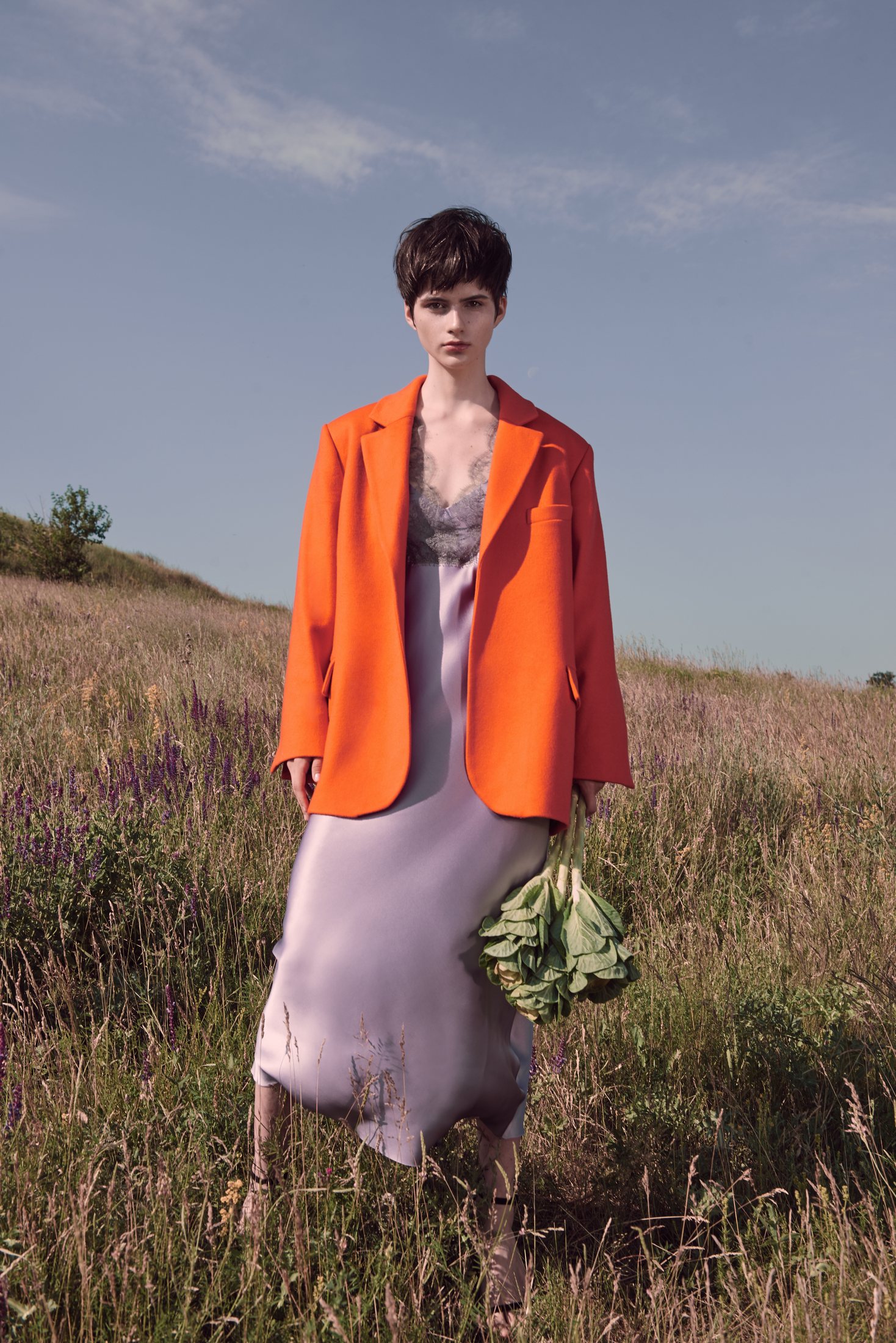 В коллекцию вошли вещи и на прохладный, и на теплый сезон: легкие платья соседствуют с шерстяными жакетами, рубашки — с пальто и костюмами. Разумеется, вписывая в азбуку бренда новые материалы, Кононова и Рябоконь не отказываются и от любимых: шелк, обязательный для Lake Studio, послужил основой для платьев лавандового и нежно-голубого цветов. И, конечно, принты: в этот раз команда представила забавный рисунок брассики, декоративной капусты, которая одновременно напоминает о любви бренда к естественности и природе, и об иронии, которая тоже присуща креативной команде.