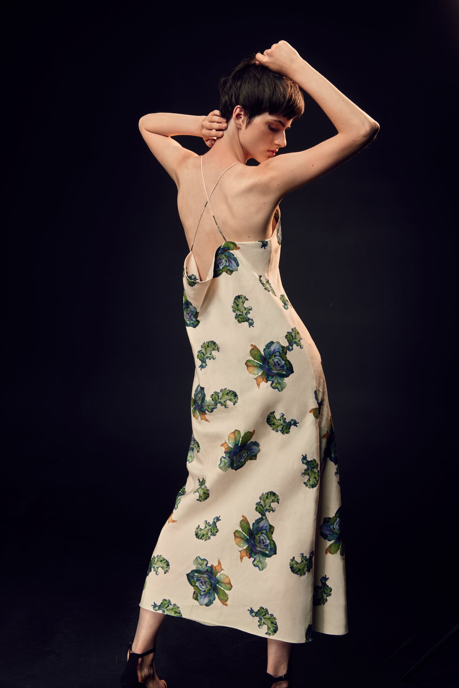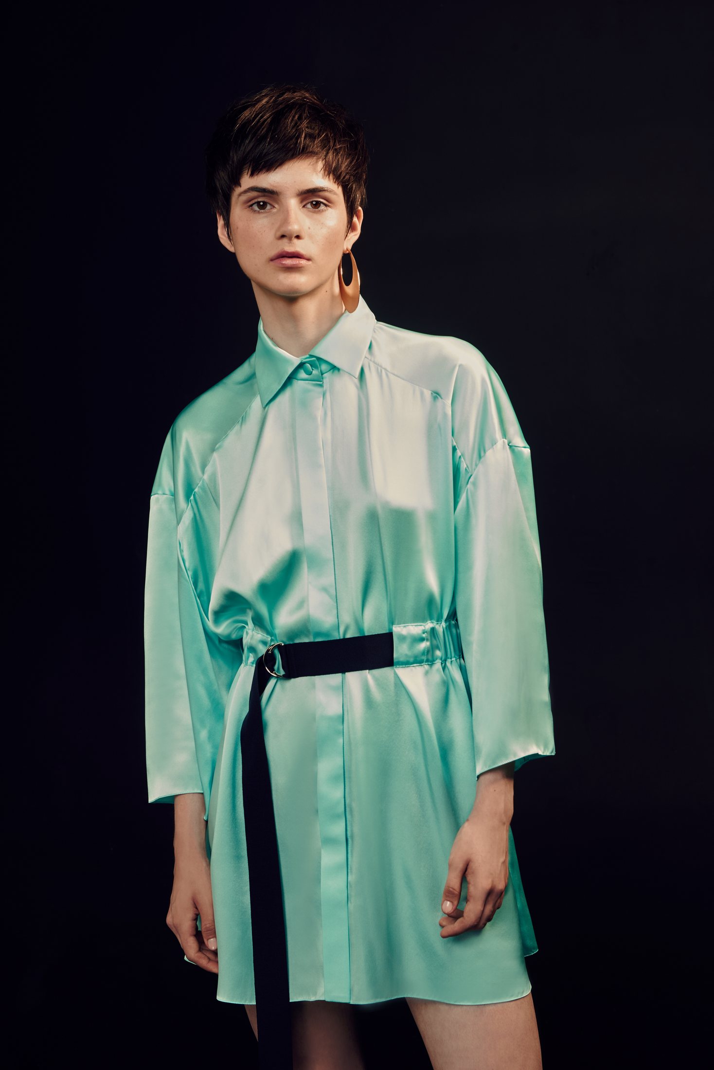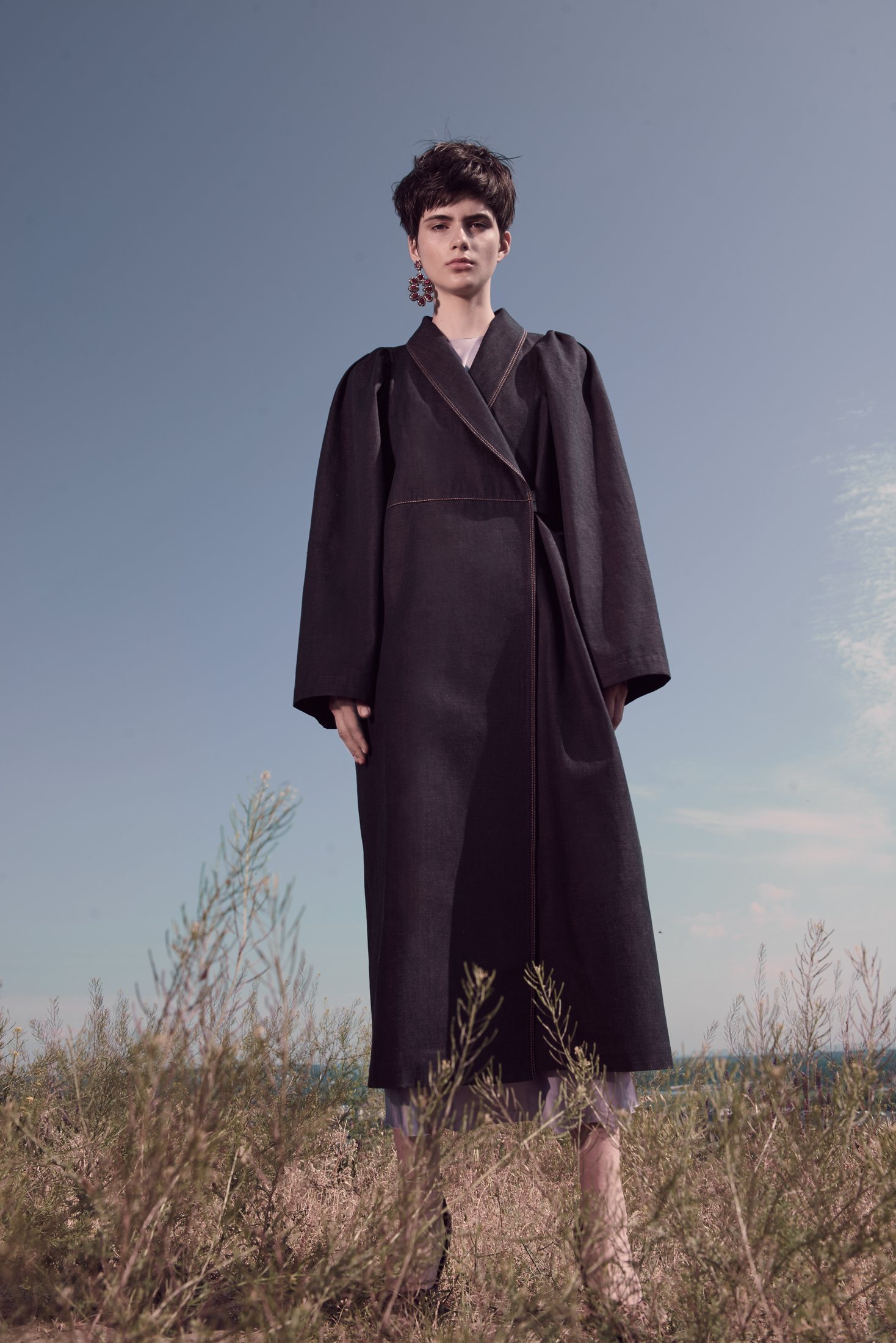 В коллекцию вошли вещи и на прохладный, и на теплый сезон: легкие платья соседствуют с шерстяными жакетами, рубашки — с пальто и костюмами. Разумеется, вписывая в азбуку бренда новые материалы, Кононова и Рябоконь не отказываются и от любимых: шелк, обязательный для Lake Studio, послужил основой для платьев лавандового и нежно-голубого цветов. И, конечно, принты: в этот раз команда представила забавный рисунок брассики, декоративной капусты, которая одновременно напоминает о любви бренда к естественности и природе, и об иронии, которая тоже присуща креативной команде.