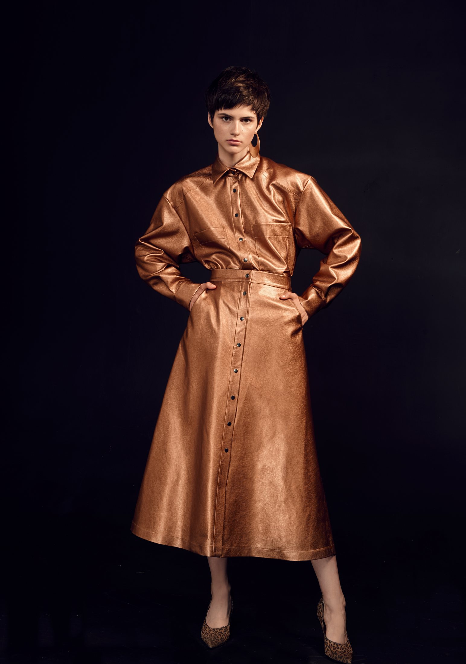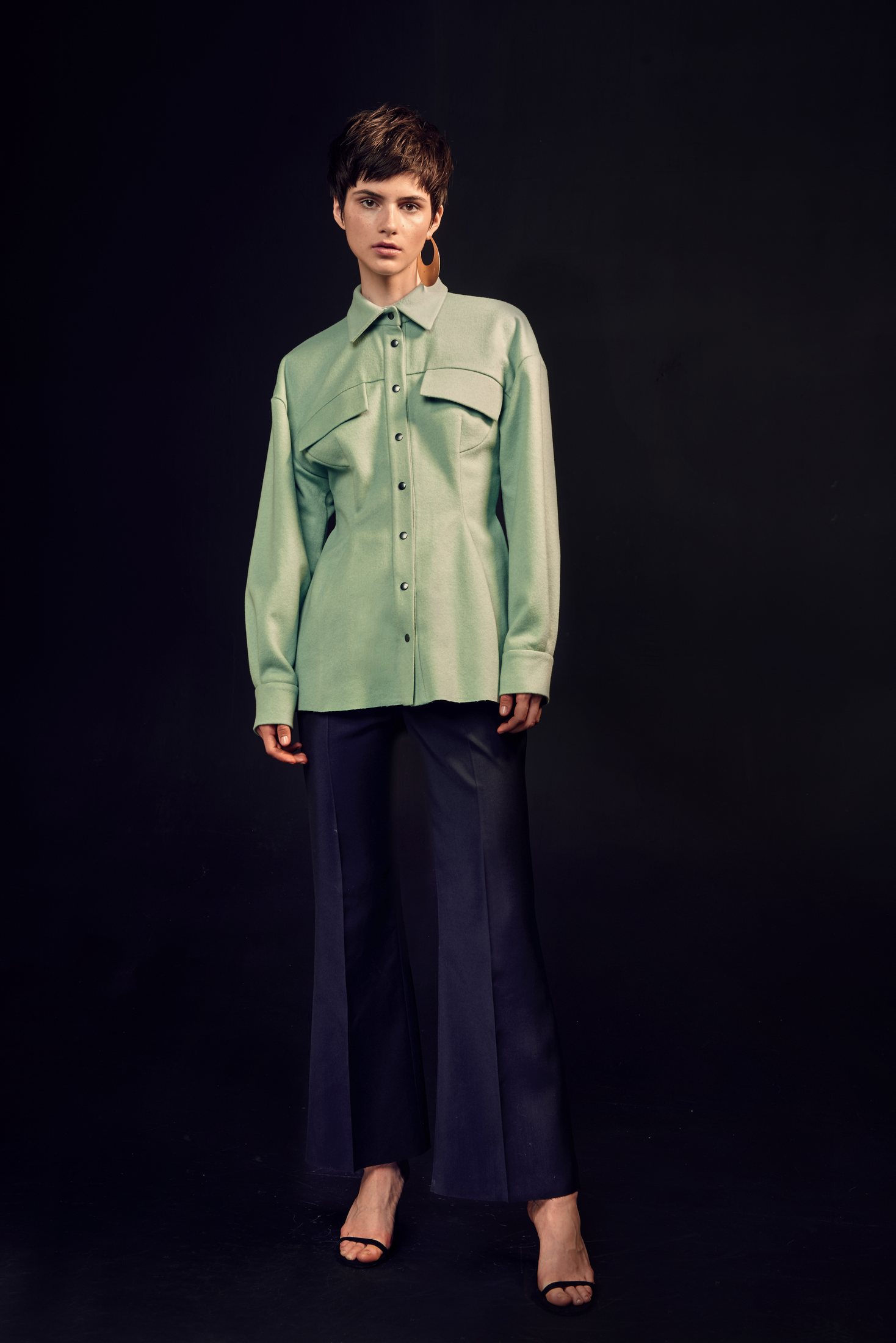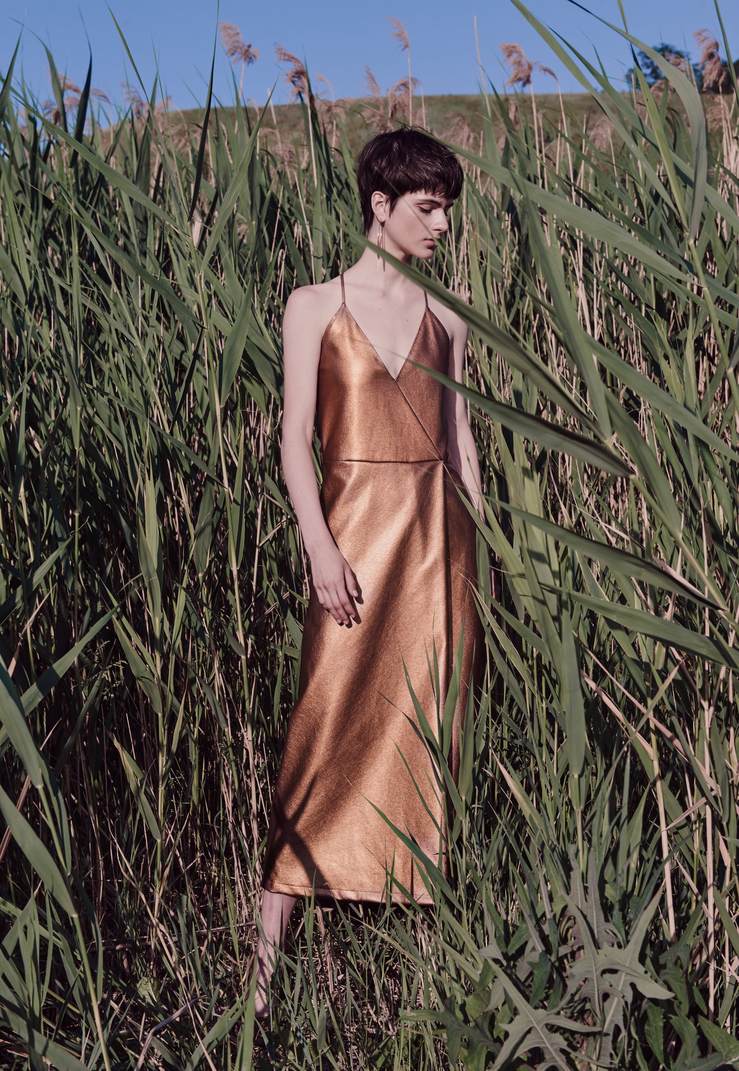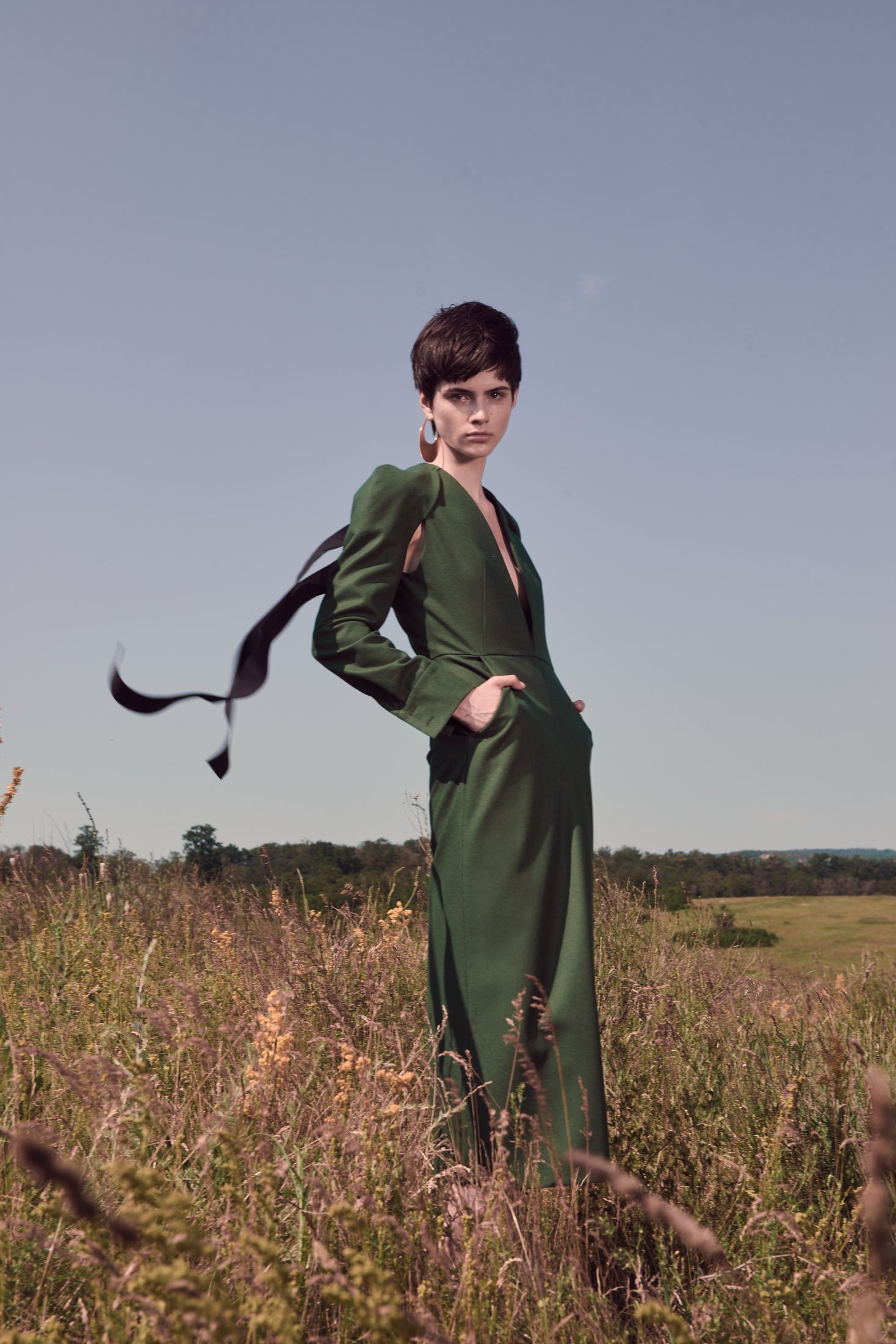 В коллекцию вошли вещи и на прохладный, и на теплый сезон: легкие платья соседствуют с шерстяными жакетами, рубашки — с пальто и костюмами. Разумеется, вписывая в азбуку бренда новые материалы, Кононова и Рябоконь не отказываются и от любимых: шелк, обязательный для Lake Studio, послужил основой для платьев лавандового и нежно-голубого цветов. И, конечно, принты: в этот раз команда представила забавный рисунок брассики, декоративной капусты, которая одновременно напоминает о любви бренда к естественности и природе, и об иронии, которая тоже присуща креативной команде.