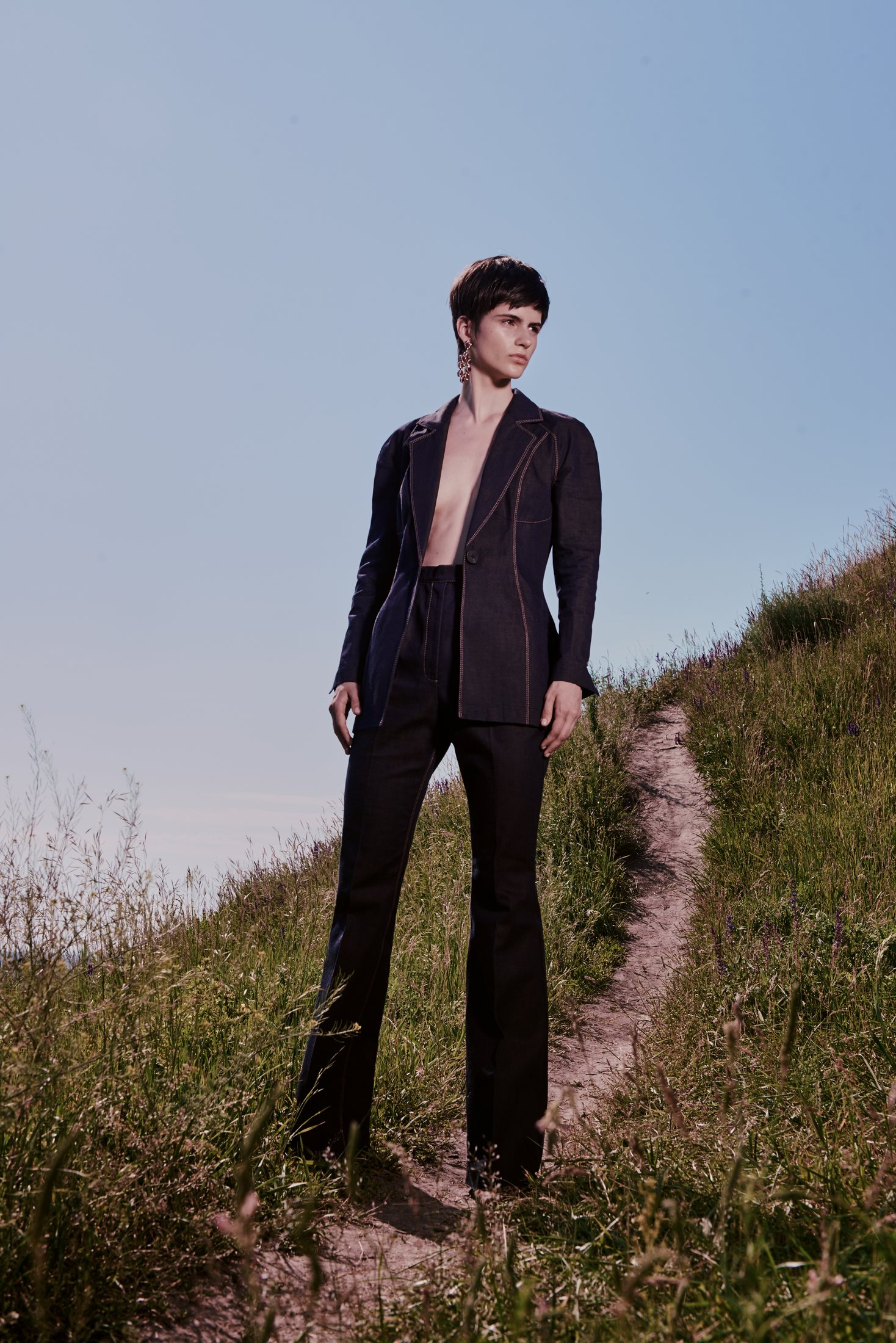 Коллекция не имеет определенной темы или источника вдохновения, она интересна другим: редко когда креативная команда экспериментировала бы так же часто, как в этом круизе. Впервые появляется деним — в нем представлены корсеты, платья, жакеты и джинсы — и искусственная кожа, которую дизайнеры используют из этических соображений, пообещав несколько сезонов назад отказаться от натуральных меха и кожи.