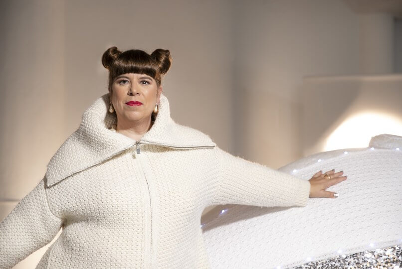 Художница уже известна своими феминистическими работами: в 2012 году она создала 6-метровую люстру из тампонов для Версальского дворца. Она стала первой женщиной-художницей, которой довелось показывать работы современного искусства в Версале. Зал дворца украсили туфли, сделанные из нержавеющих кастрюль, а фонтан в саду был украшен огромной инсталляцией из пластиковых вилок.