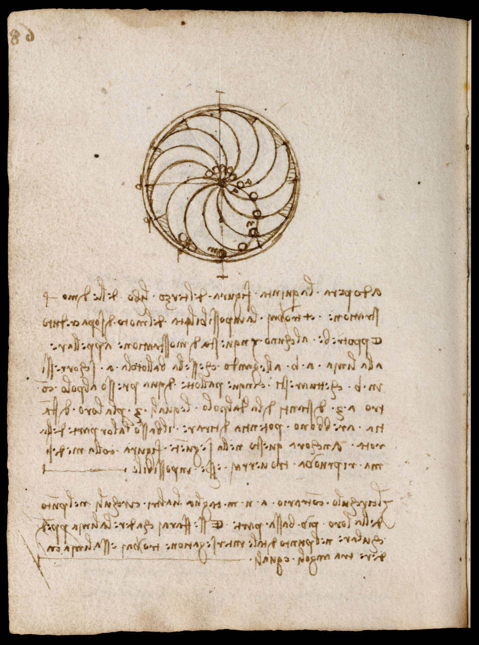 Записные книжки включают наброски и схемы, они содержат примечания к итальянскому зеркальному письму 16-го века. Читаются они в обратном порядке (справа налево).