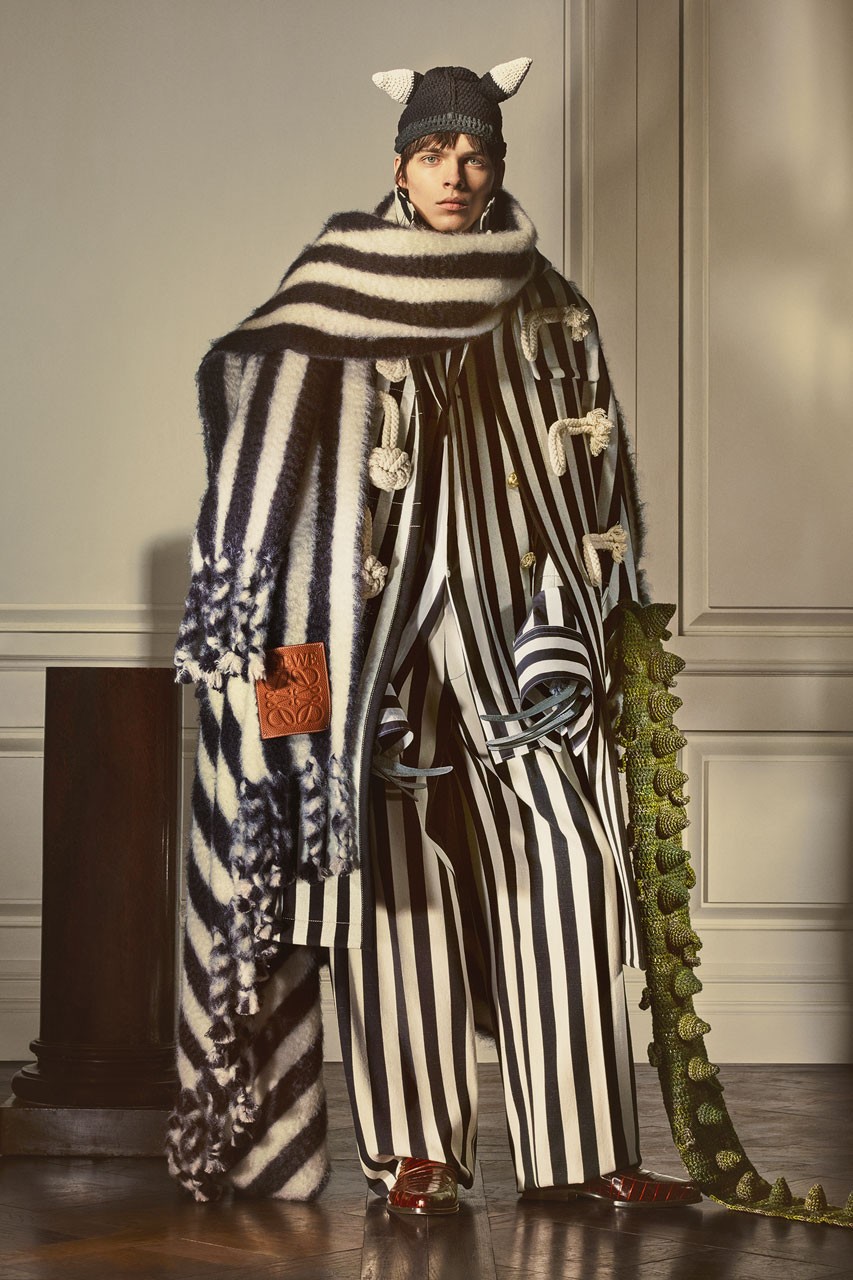 В коллекции представлены костюмы, оверсайз-свитера, пальто и блузы, декорированные вышивкой и принтами по мотивам работ Моргана. Андерсон использовал рисунки перьев птиц додо, цветочных арабесок и павлина. Помимо этого, в коллекции представлены знаковые сумки Loewe: Puzzle, Gate и Hammock, — а также аксессуары.