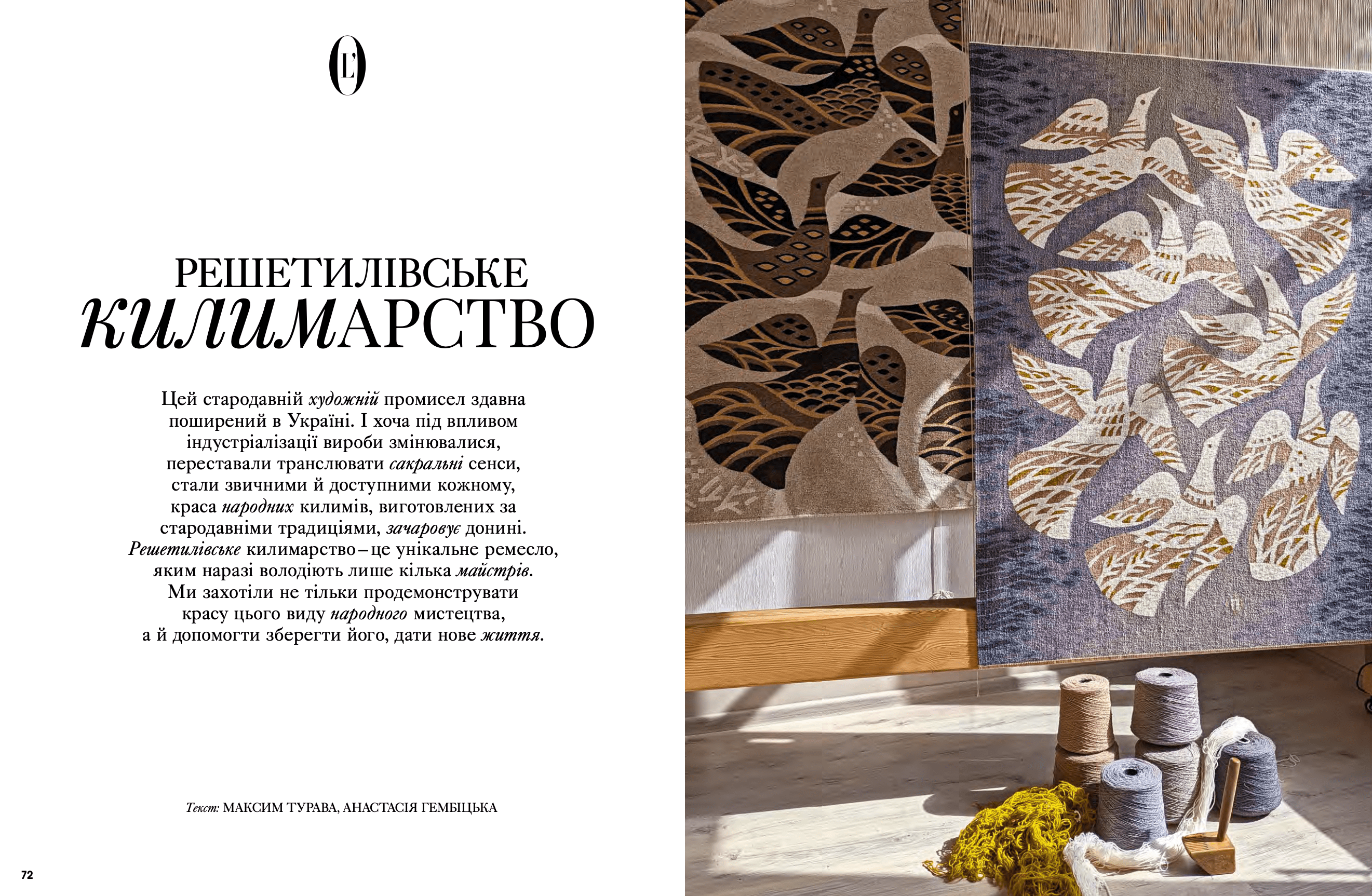 Це число присвячене культурним діячам, які у тяжкий час знаходять сили й ресурси творити, оспівувати свою країну в мистецтві та транслювати у світ українські коди – від стародавніх до сучасних. На сторінках видання відображено всі грані культурного пласта України – килими, рушники, скульптура, архітектура, кіно, живопис, література, фотографія, мода. Разом з експертами та істориками ми досліджували віхи української культури й обговорили механіку повернення вкрадених росією об’єктів мистецтва, плани реновації міст та значущість культури у сучасному суспільстві.