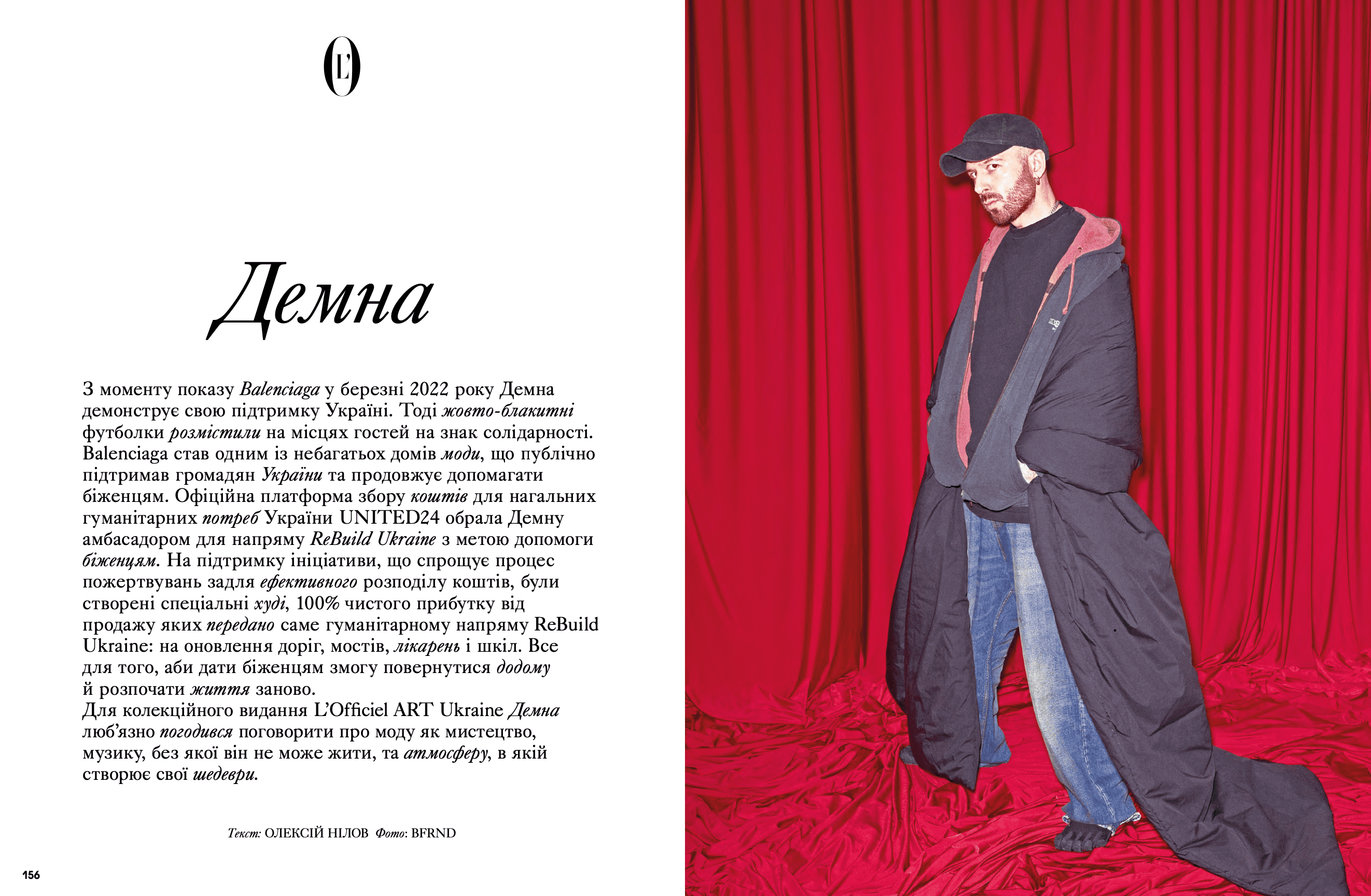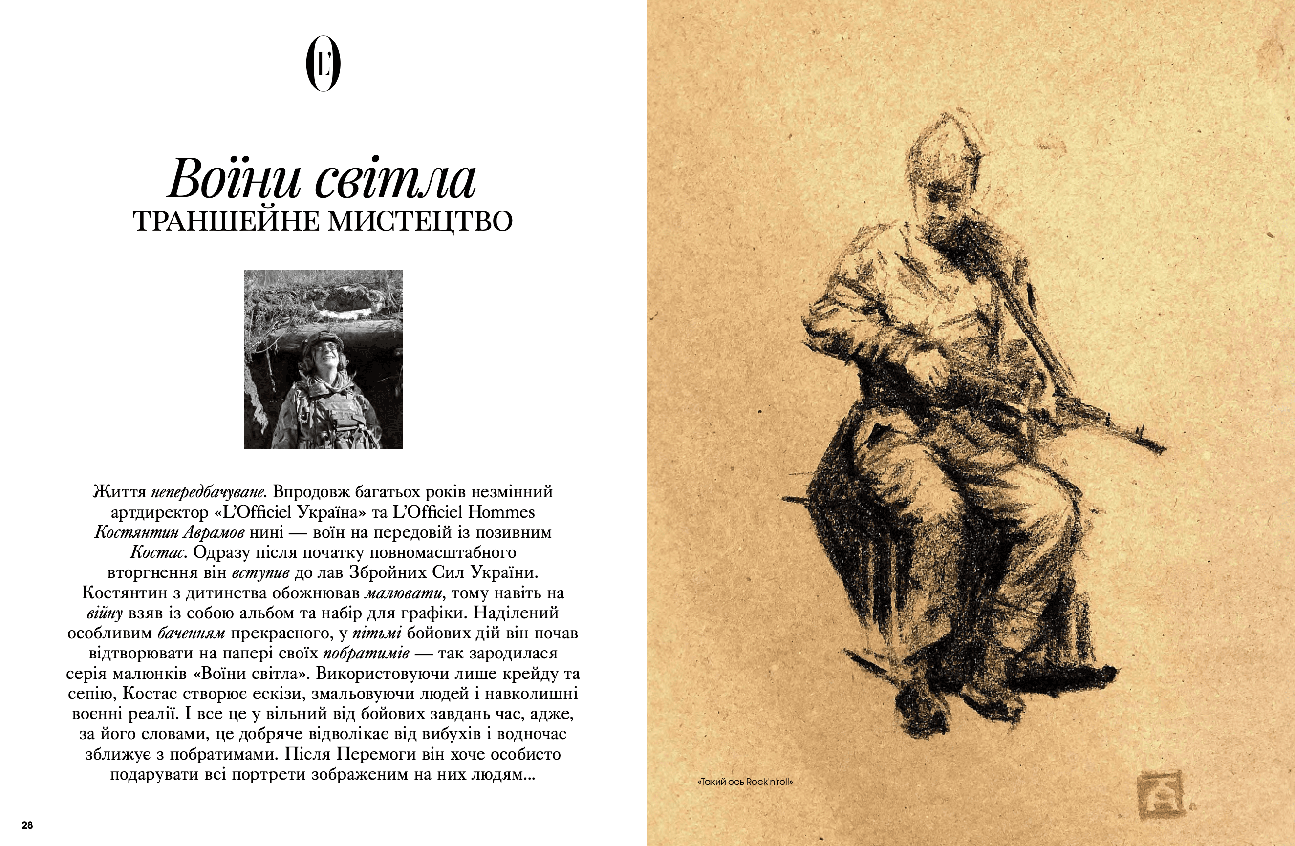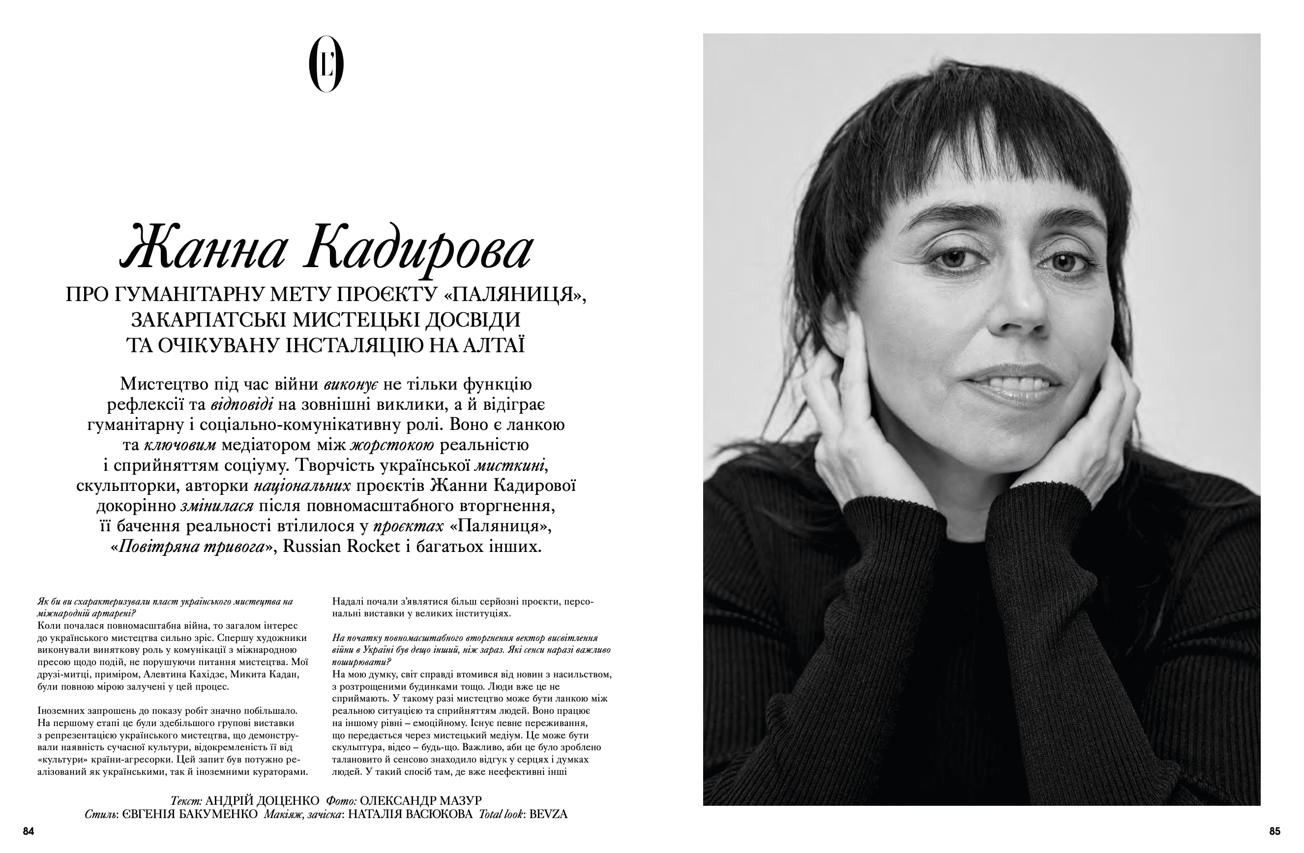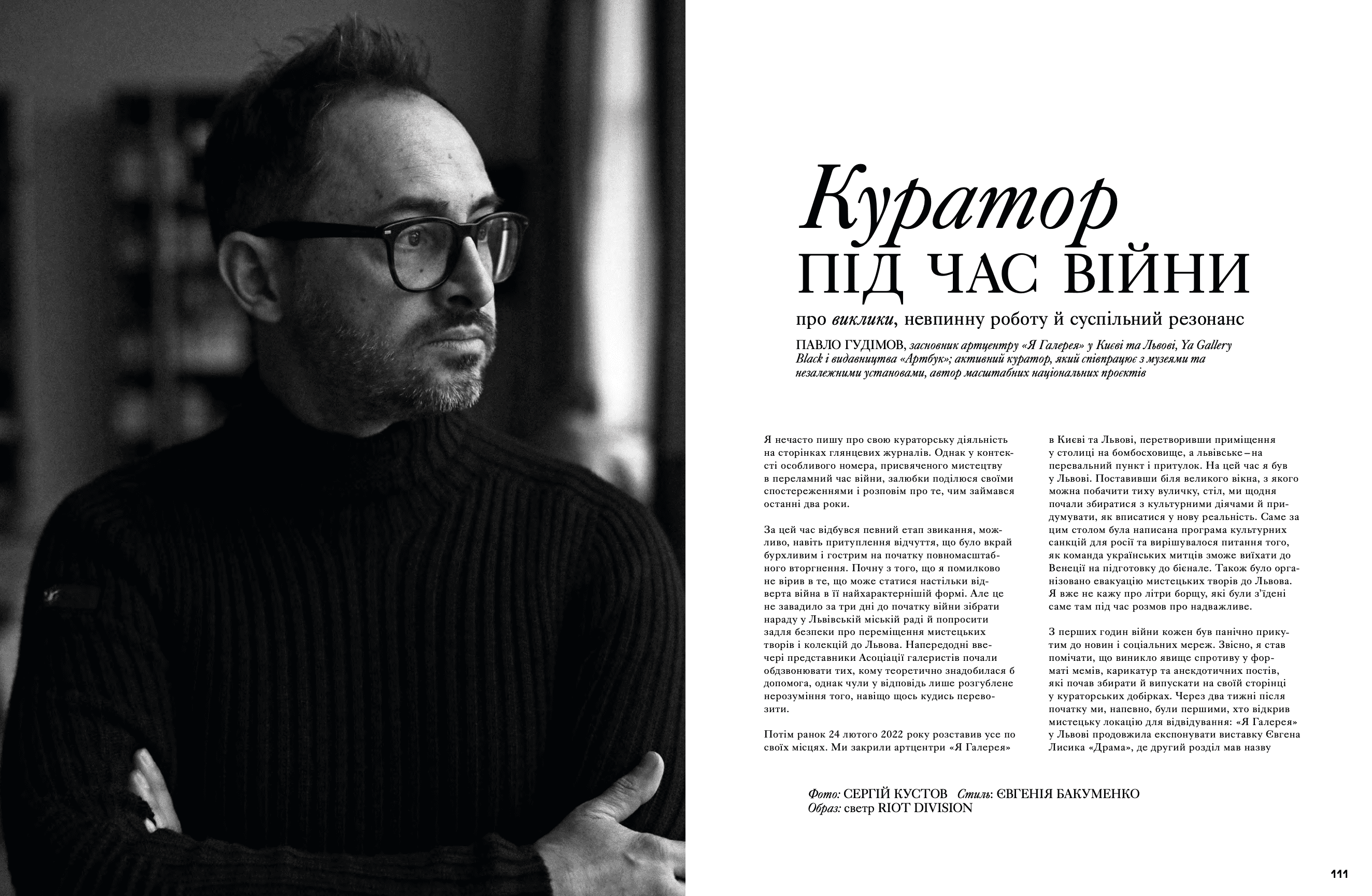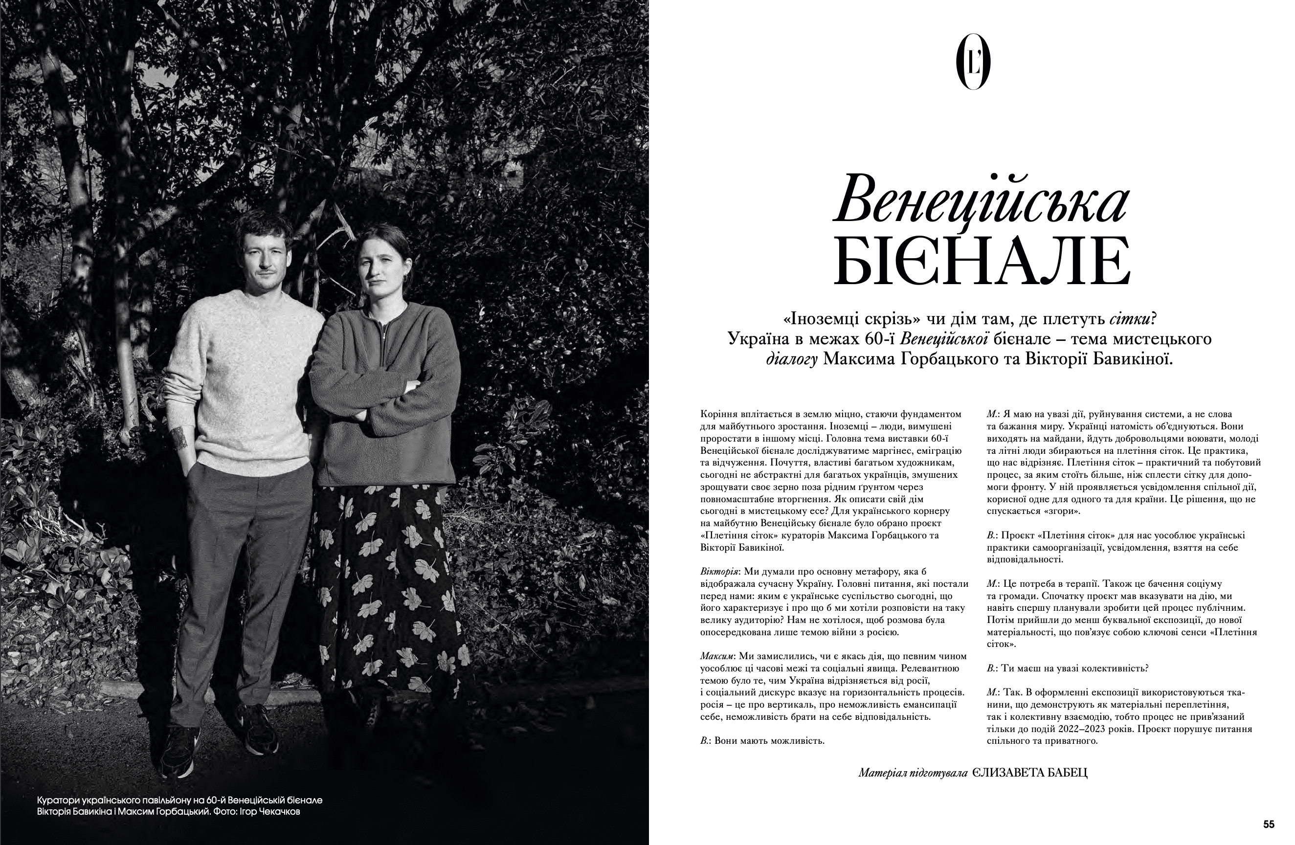 На сторінках видання з'явилися Дмитро Авдєєв, український кінорежисер, кінокритик та волонтер, Марія Дідковська з колекцією артшампанського Victoire de la Dignité, незмінний артдиректор «L’Оfficiel Україна» та L’Officiel Hommes Костянтин Аврамов з проєктом «Воїни світла», який він створює на фронті, Сергій Святченко з проєктом «Обличчя війни», колаж якого став обкладинкою артчисла (у проєкті зображені обличчя українських біженців у Данії – вони прикривають краєвиди зруйнованого Харкова). Мистецтвознавиця та співзасновниця Музею Харківської школи фотографії Надія Бернар-Ковальчук розповіла про етапи формування, розвитку та пошуку місця харківських фотографів у актуальному мистецтві; Україна в межах 60-ї Венеційської бієнале – тема мистецького діалогу Максима Горбацького та Вікторії Бавикіної. Віра Агеєва, професорка Києво-Могилянської академії, літературна критикиня, докторка філологічних наук, лауреатка Шевченківської премії, членкиня журі премії «Книга року ВВС» та співзасновниція Київського інституту гендерних досліджень, розповіла про український культурний спротив, поімперські наслідки й роздвоєність Гоголя. Олександра Теліженко розкрила коди українського рушника; для неї вишивка була та є справою життя. Нині її роботи, що утверджують багатство нашої культури, набули нової цінності. З Ольгою Пілюгіною ми поговорили про решетилівське килимарство, стародавній художній промисел, здавна поширений в Україні. Також ми запросили дослідницю мистецтва воєнного часу та фахівчиню з міжнародних переговорів Олесю Геращенко до обговорення українського культурного надбання, яке було викрадено, вивезено та пошкоджено. Жанна Кадирова розповіла про гуманітарну мету проєкту «Паляниця», закарпатські мистецькі досвіди та очікувану інсталяцію на Алтаї.