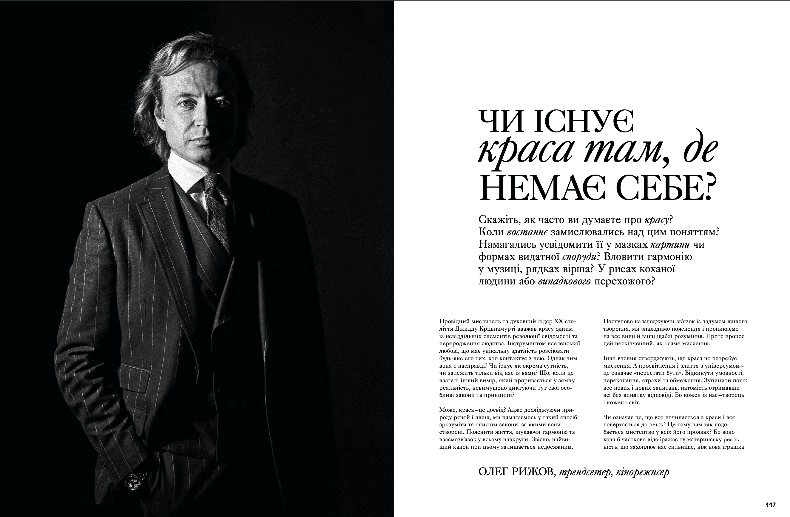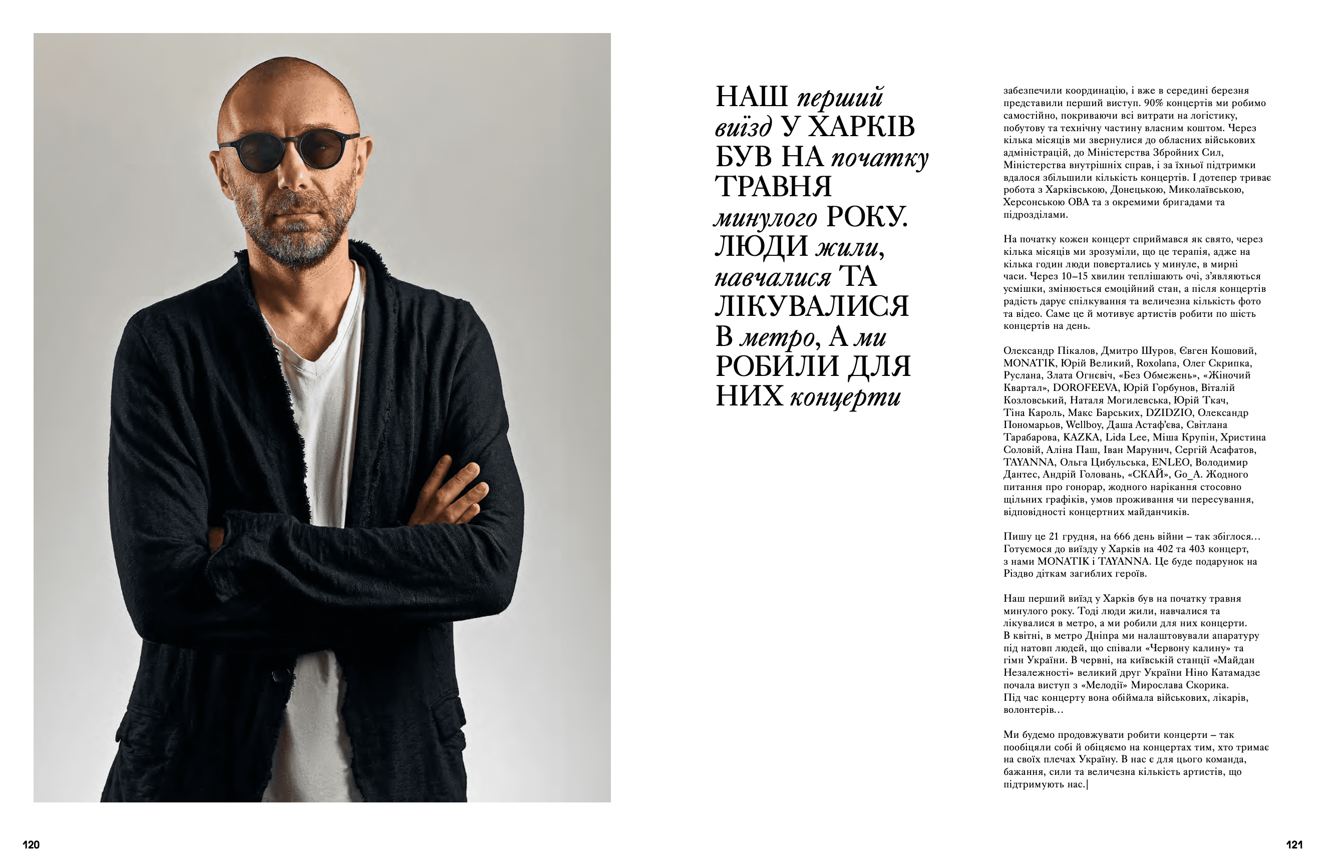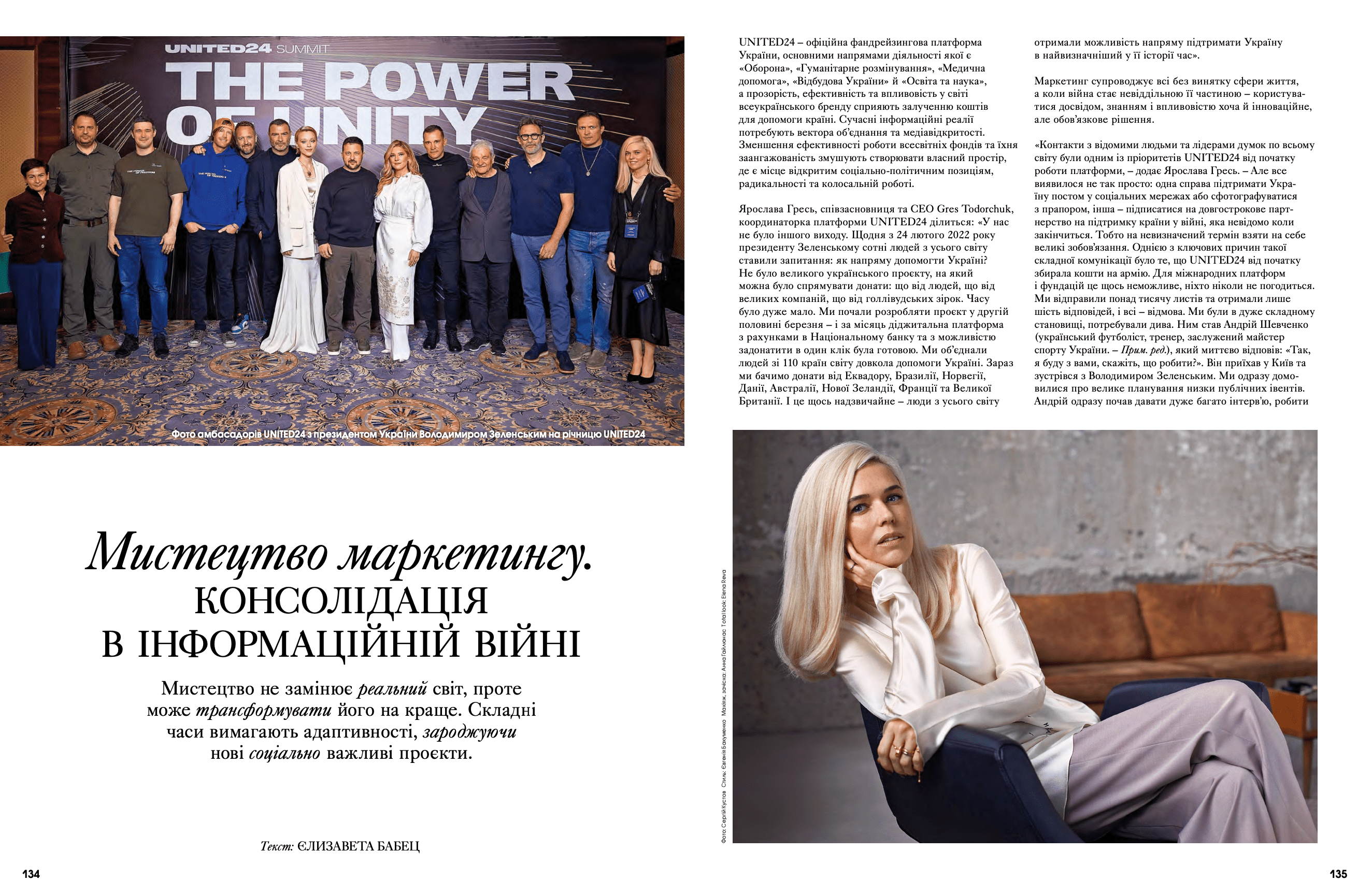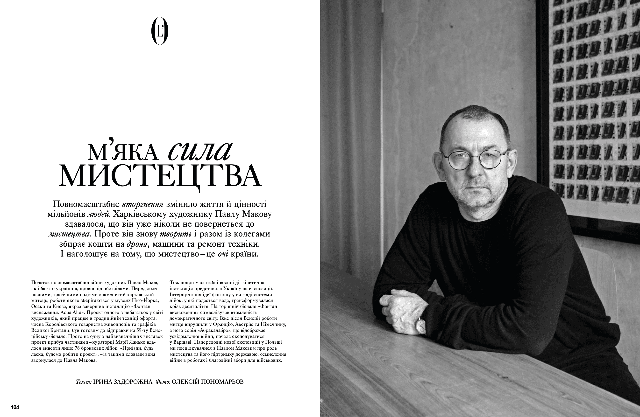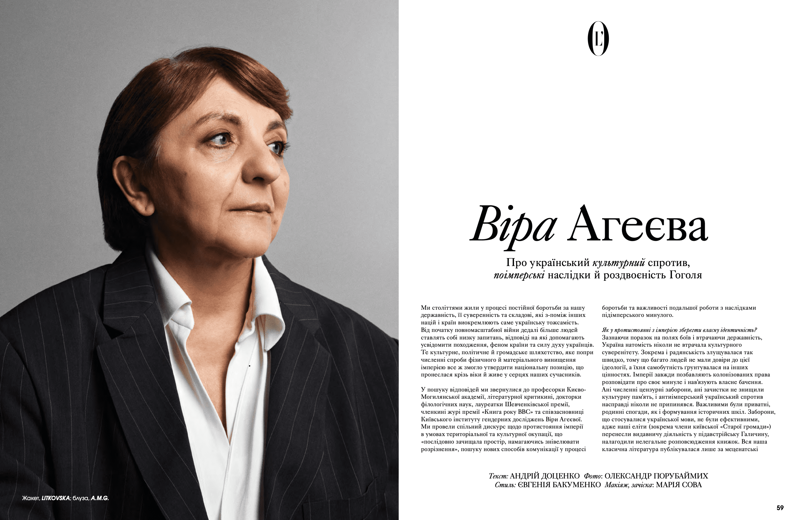 На сторінках видання з'явилися Дмитро Авдєєв, український кінорежисер, кінокритик та волонтер, Марія Дідковська з колекцією артшампанського Victoire de la Dignité, незмінний артдиректор «L’Оfficiel Україна» та L’Officiel Hommes Костянтин Аврамов з проєктом «Воїни світла», який він створює на фронті, Сергій Святченко з проєктом «Обличчя війни», колаж якого став обкладинкою артчисла (у проєкті зображені обличчя українських біженців у Данії – вони прикривають краєвиди зруйнованого Харкова). Мистецтвознавиця та співзасновниця Музею Харківської школи фотографії Надія Бернар-Ковальчук розповіла про етапи формування, розвитку та пошуку місця харківських фотографів у актуальному мистецтві; Україна в межах 60-ї Венеційської бієнале – тема мистецького діалогу Максима Горбацького та Вікторії Бавикіної. Віра Агеєва, професорка Києво-Могилянської академії, літературна критикиня, докторка філологічних наук, лауреатка Шевченківської премії, членкиня журі премії «Книга року ВВС» та співзасновниція Київського інституту гендерних досліджень, розповіла про український культурний спротив, поімперські наслідки й роздвоєність Гоголя. Олександра Теліженко розкрила коди українського рушника; для неї вишивка була та є справою життя. Нині її роботи, що утверджують багатство нашої культури, набули нової цінності. З Ольгою Пілюгіною ми поговорили про решетилівське килимарство, стародавній художній промисел, здавна поширений в Україні. Також ми запросили дослідницю мистецтва воєнного часу та фахівчиню з міжнародних переговорів Олесю Геращенко до обговорення українського культурного надбання, яке було викрадено, вивезено та пошкоджено. Жанна Кадирова розповіла про гуманітарну мету проєкту «Паляниця», закарпатські мистецькі досвіди та очікувану інсталяцію на Алтаї.