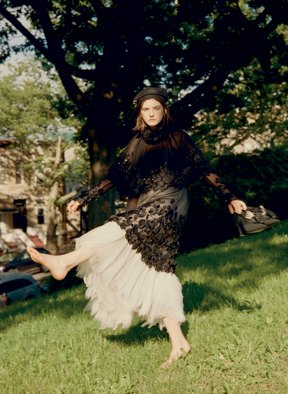Раздел «Мода» открывает история с Лумой Гроте, моделью, украсившей обложку: она примеряет купальные костюмы, которые одинаково хорошо выглядят и на пляже, и в офисе. За ней следуют съемки, вдохновленные эстетикой вестернов и серферской культуры, а также модные размышления на тему симбиоза бабушкиного гардероба и поп-эстетики.