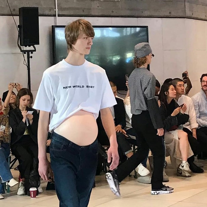 У некоторых из молодых людей, появившихся на подиуме во время шоу Ксандера Чжоу, были накладные животики, созданные знаменитой визажисткой Исамайей Френч, что делало их похожими на беременных, у других присутствовали накладки на коленях, кто-то выходил в неестественно голубых контактных линзах, а у одной модели над бровями была прикреплена оптико-волоконная светящаяся линия. Кроме того, во время шоу женский, будто принадлежащий роботу, голос произносил фразы в духе «Я оцифрован/а». Все это невольно вызывало ассоциации с нашествием инопланетян.