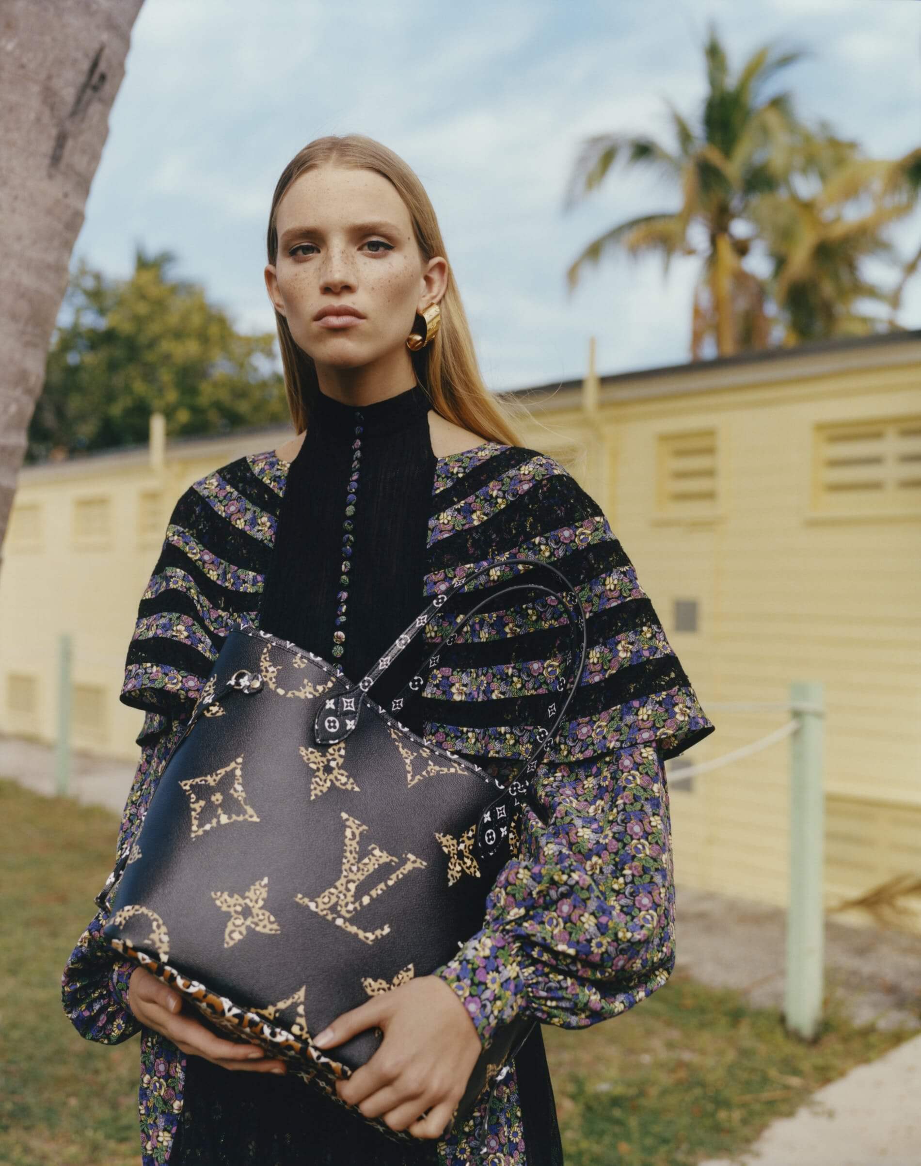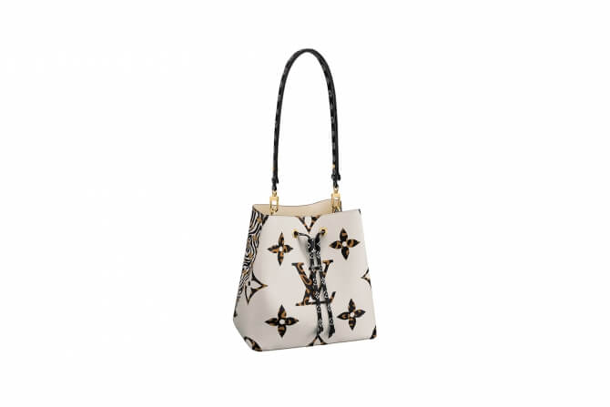 Главными принтами коллекции стали леопардовый и зебра, они украшают монограмму бренда. Также Николя Жескьер решил изменить главные буквы LV, увеличив их и украсив принтами и золотом.
