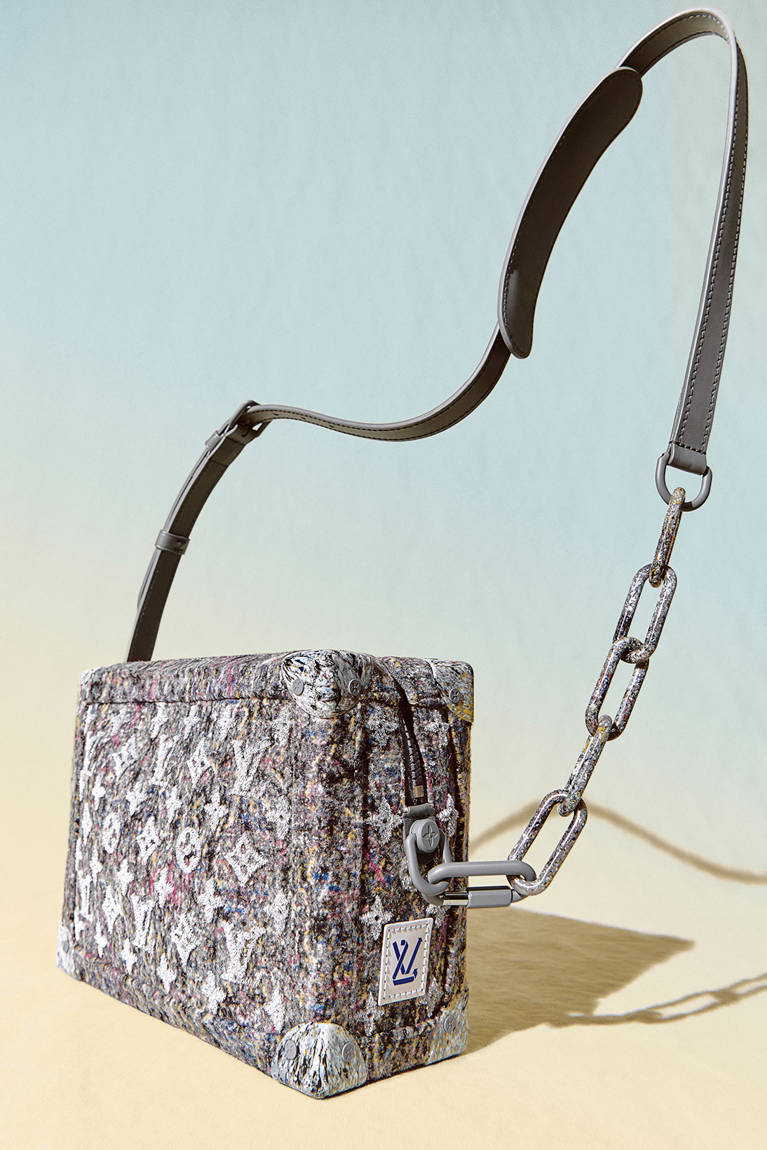 Вирджил Абло разработал серию экосумок Louis Vuitton для сезона осень-зима – 2021. Модели Keepall, Keepall XS и Soft Trunk изготовлены из инновационного текстиля, состоящего на 43% из сертифицированного органического хлопка и на 20% из переработанной шерсти. Материал имеет пушистую текстуру, напоминающую войлок. На изделия нанесены монограммы бренда, прошитые люрексовой нитью.