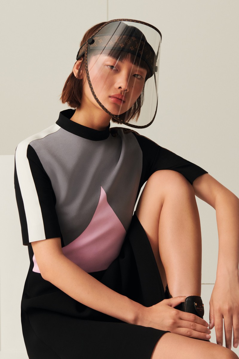 Louis Vuitton представили защитный экран для лица — LV Shield Visor. Средство индивидуальной защиты имеет золотые заклепки с гравировкой и ремешок с монограммой LV. Сам экран фотохроматический: он меняет цвет с прозрачного на темный при попадании на него солнечного света.
