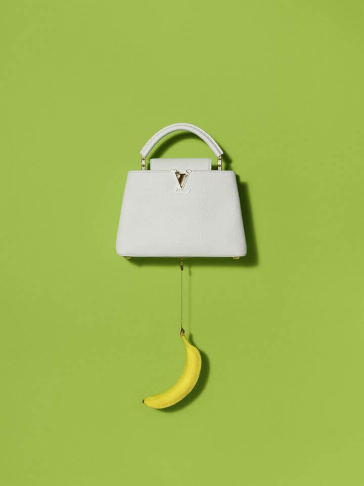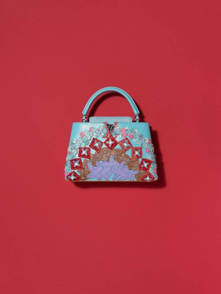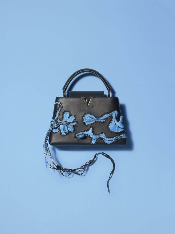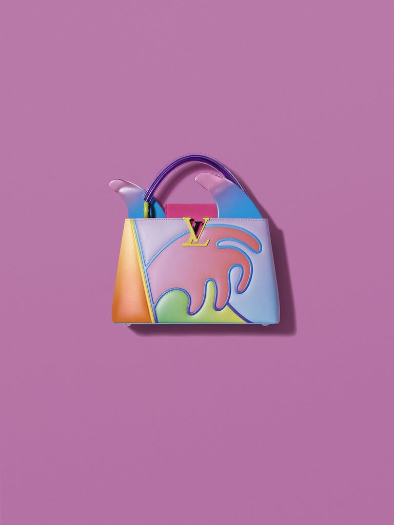 В начале июня Louis Vuitton представили шесть сумок Capucines, созданных в коллаборации с художниками: Сэмом Фолсом, Урсом Фишером, Николасом Хлобо, Алексом Израэлем, Чабалала Самом и Джонасом Вудом. Каждый из них создал свою интерпретацию сумки, названной в честь первого бутика модного дома. Получились сумки с бананом, разноцветными волнами, вышивкой и аппликациями.