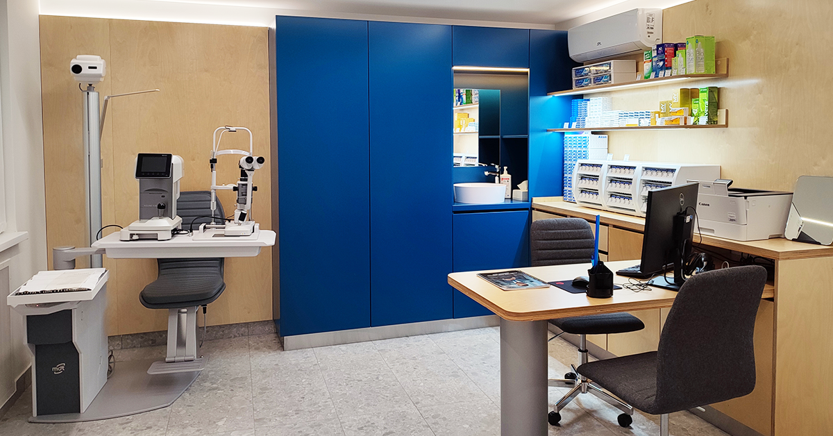 Що стосується естетики та модних вподобань, можна спиратися на власний смак чи пораду консультантів. А от професійна турбота про зір відбувається на другому поверсі цієї локації. Тут облаштовано 2 затишних кабінети офтальмолога. До послуг гостей сучасне обладнання і фахові лікарі, щоб улюблені окуляри ще й максимально відповідали потребам зору.