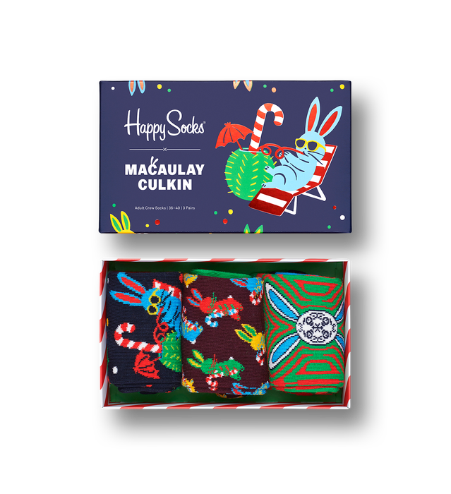 Маколей Калкин разработал 3 принта с изображениями кроликов для новой коллаборации с Happy Socks.