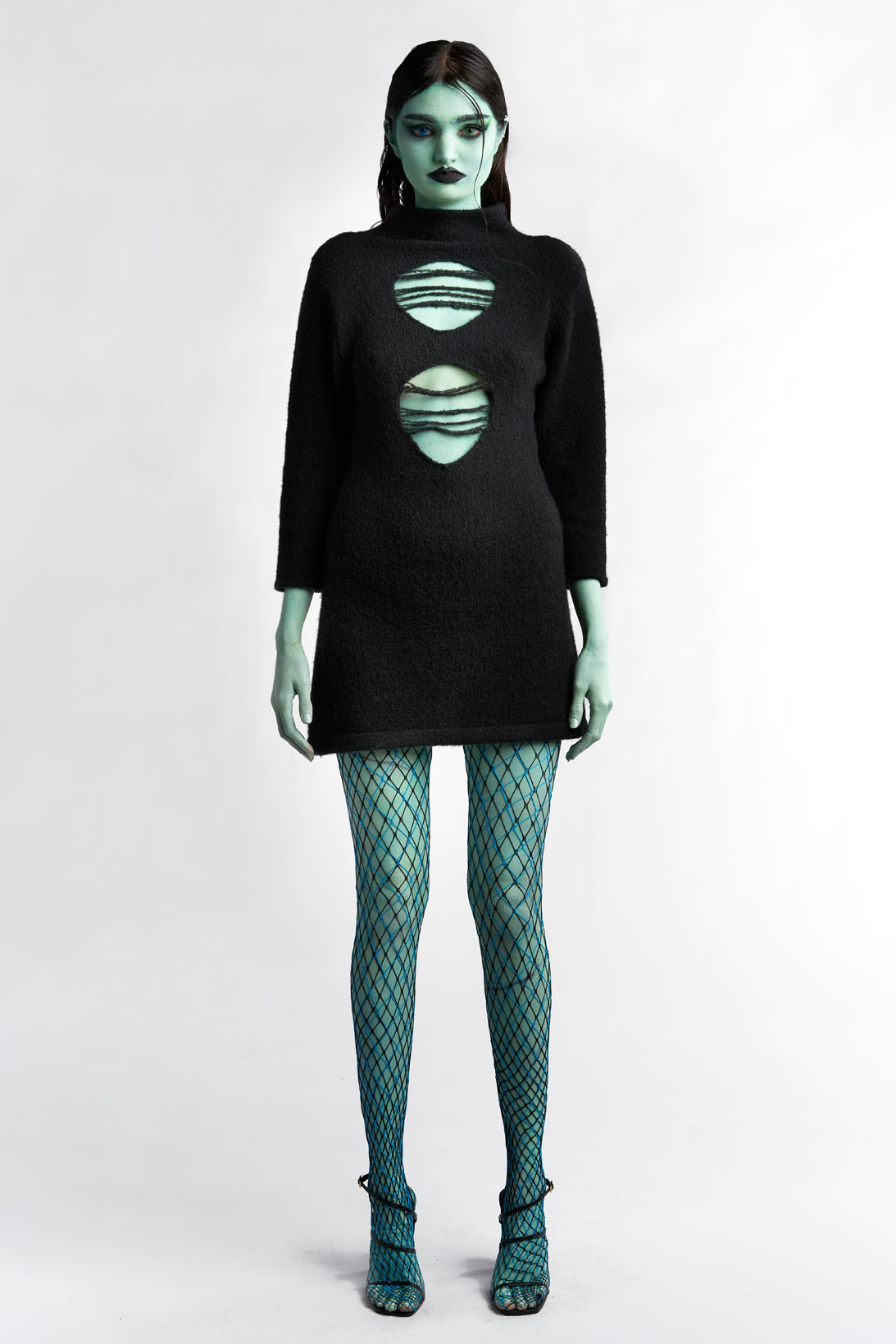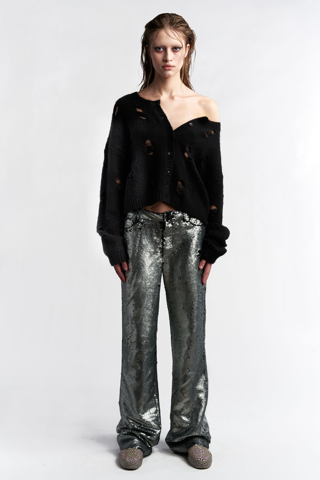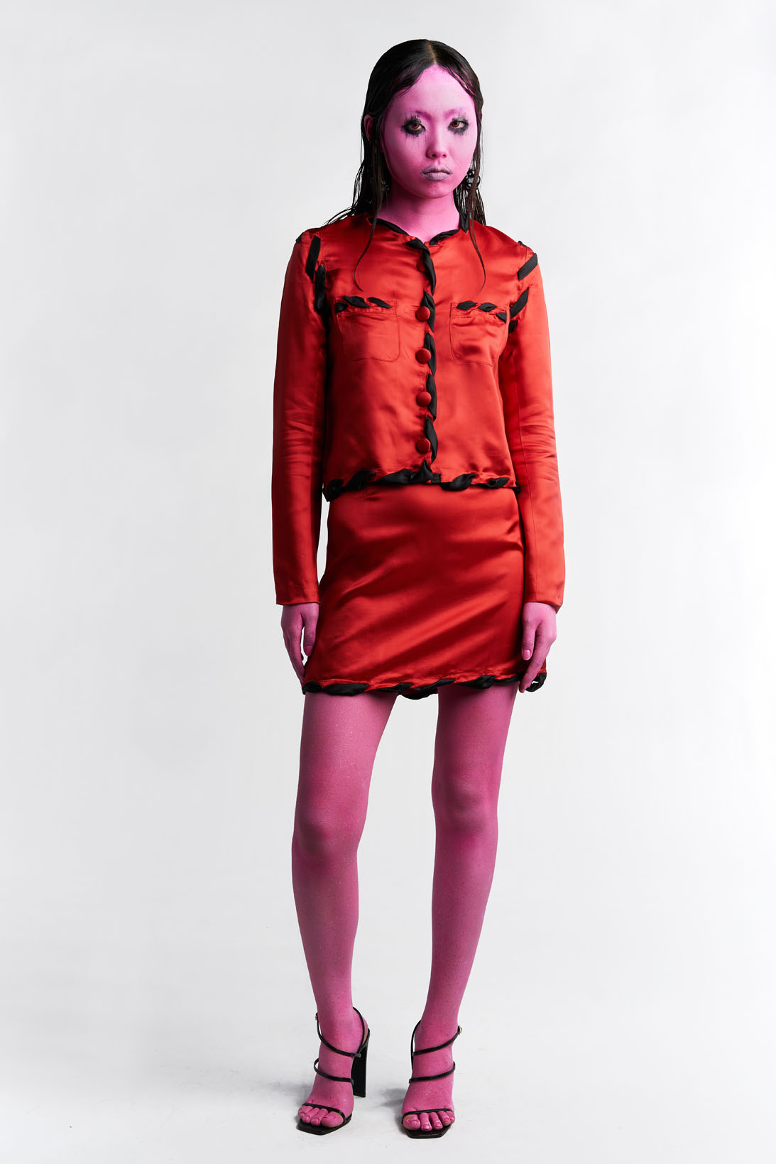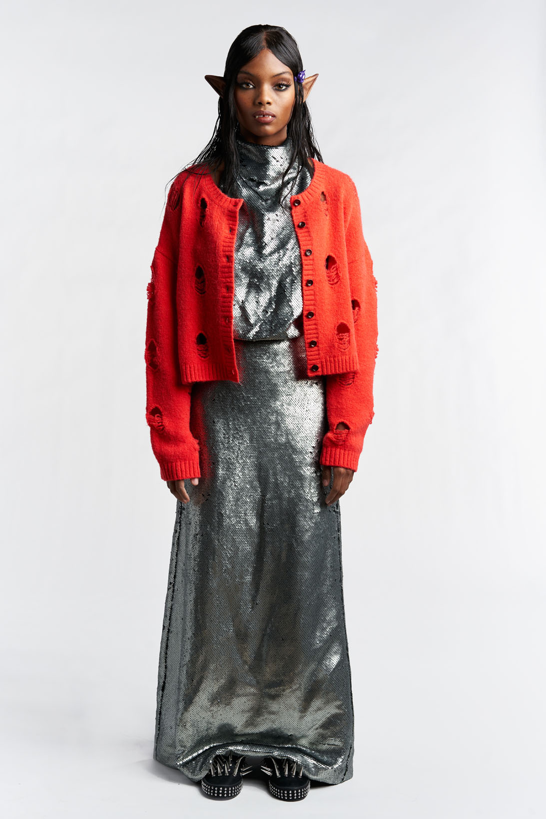 Главным вдохновением стали куклы Mattel. В линейку осень-зима – 2022 вошли лаковые тренчи, принтованные slim-комбинезоны, трикотажные платья длины мини, укороченные кардиганы и брюки клеш с пайетками. Среди аксессуаров коллекции – босоножки на тонких перемычках, сланцы и ботфорты на завязках, созданные в коллаборации с американским брендом Keds.