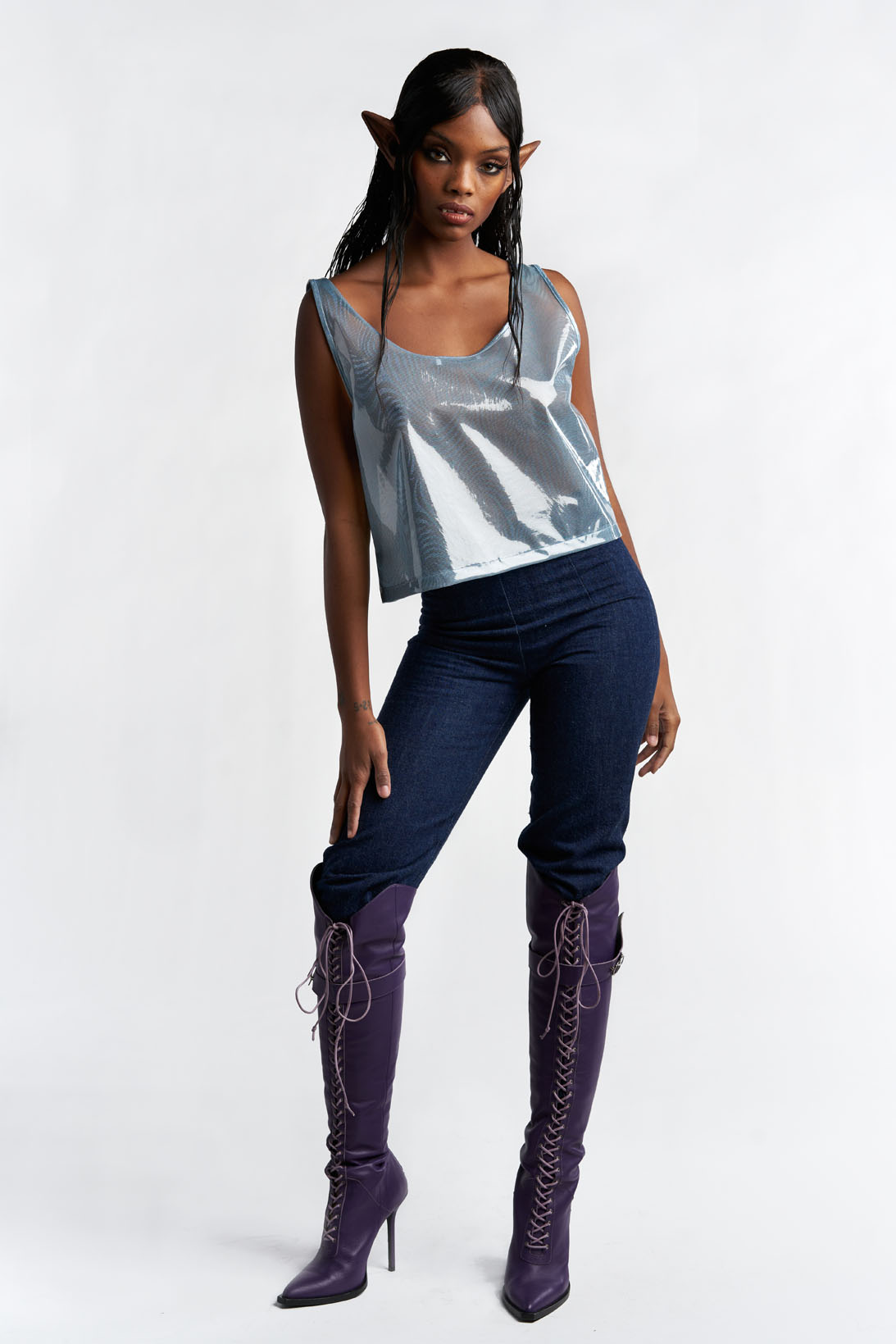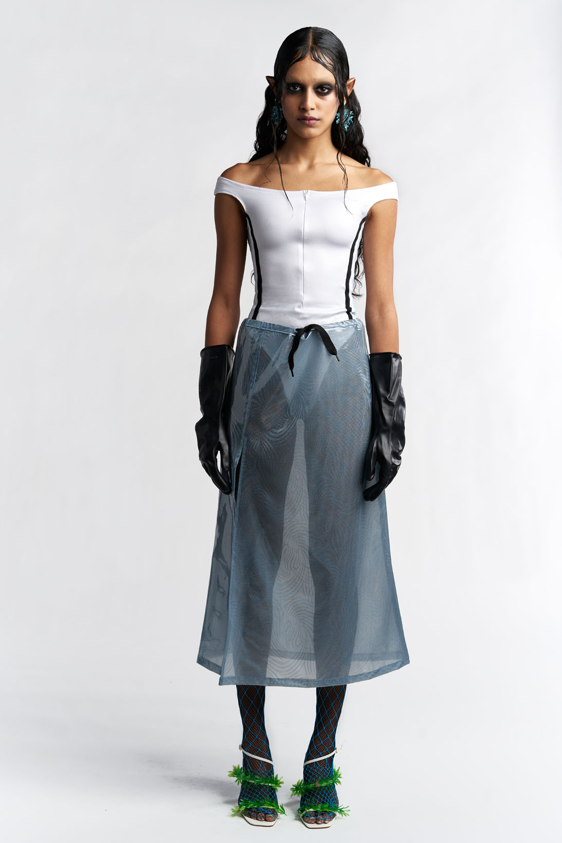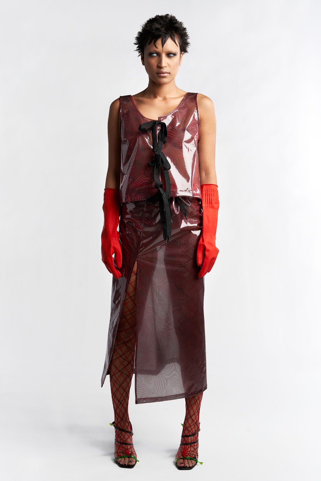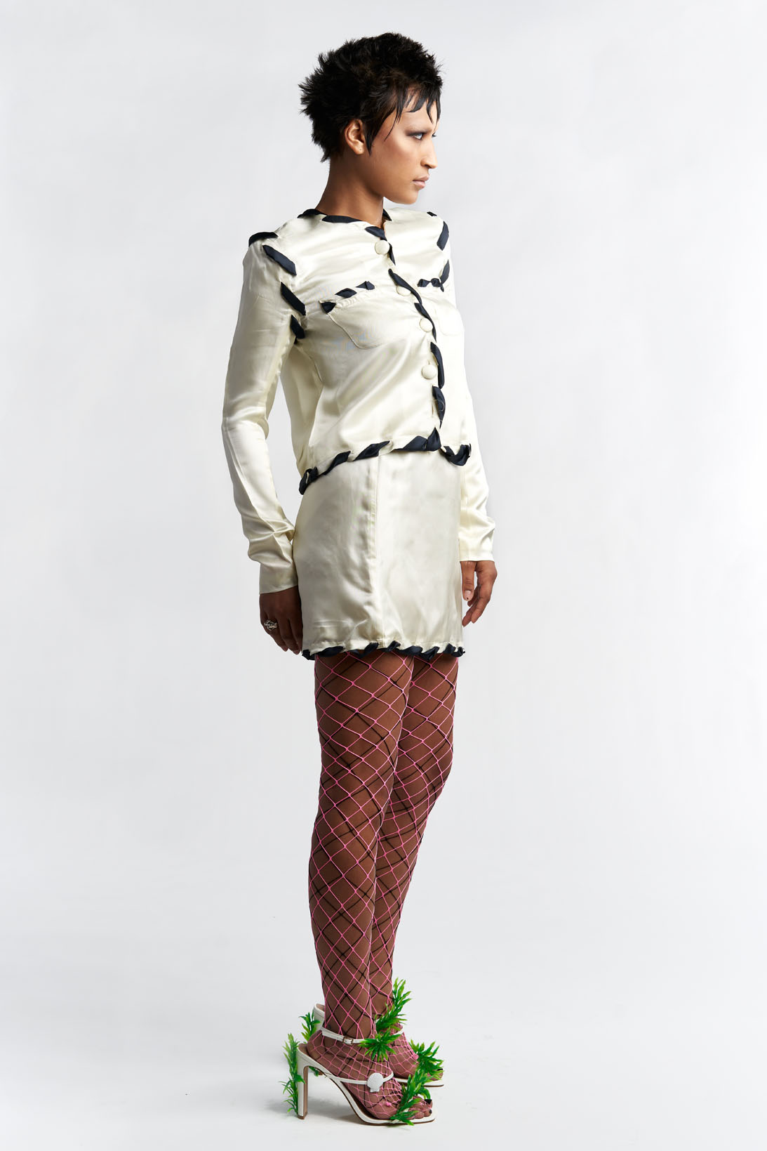 Главным вдохновением стали куклы Mattel. В линейку осень-зима – 2022 вошли лаковые тренчи, принтованные slim-комбинезоны, трикотажные платья длины мини, укороченные кардиганы и брюки клеш с пайетками. Среди аксессуаров коллекции – босоножки на тонких перемычках, сланцы и ботфорты на завязках, созданные в коллаборации с американским брендом Keds.