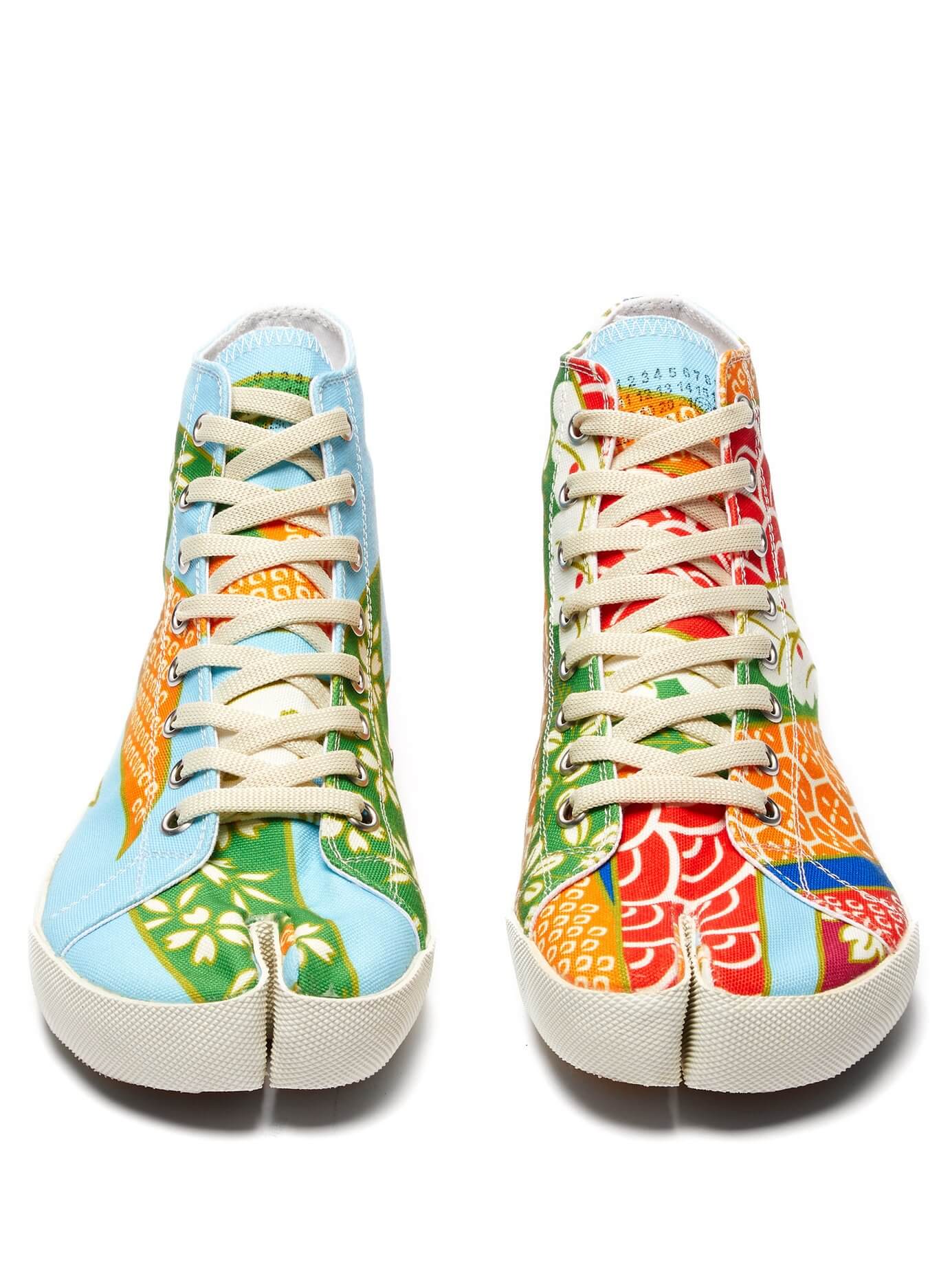 Maison Margiela выпустили весеннюю коллекцию обуви. Кроме культовых ботинок таби, в коллекцию вошли высокие и низкие кеды с раздвоенным носком и лоферы. Тканевые кеды с резиновой подошвой есть как в базовых цветах, так и с ярким принтом, вдохновленным интерьерами 70-х годов.