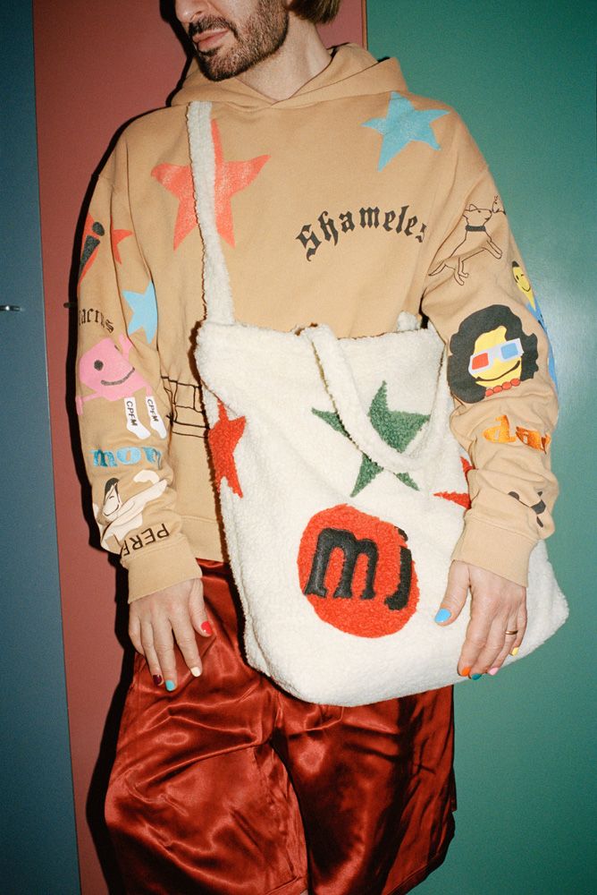 В коллекцию вошли плюшевые куртки, сумки, худи, лонгсливы.