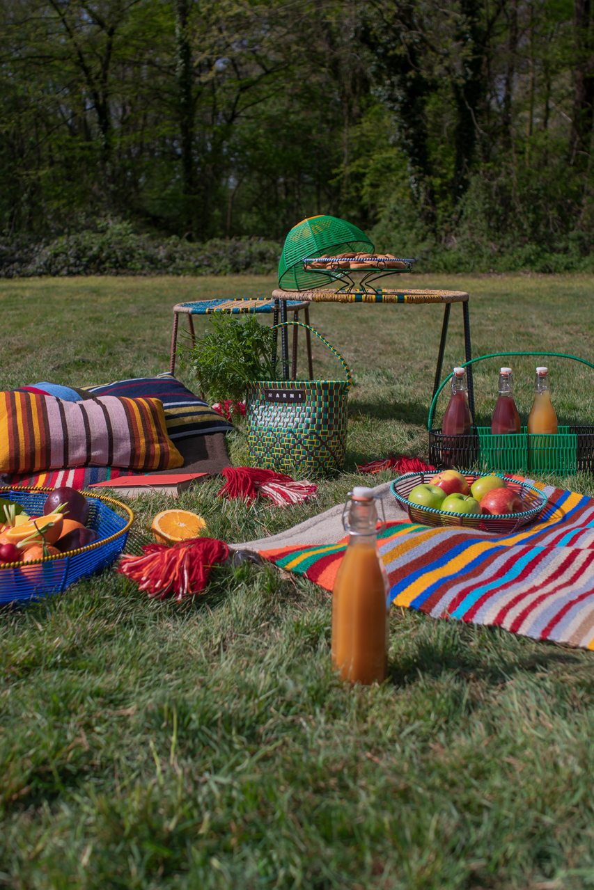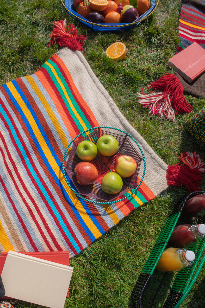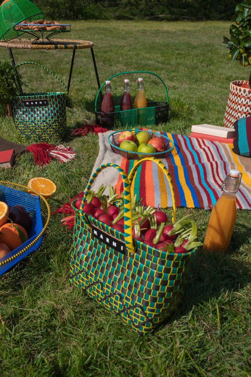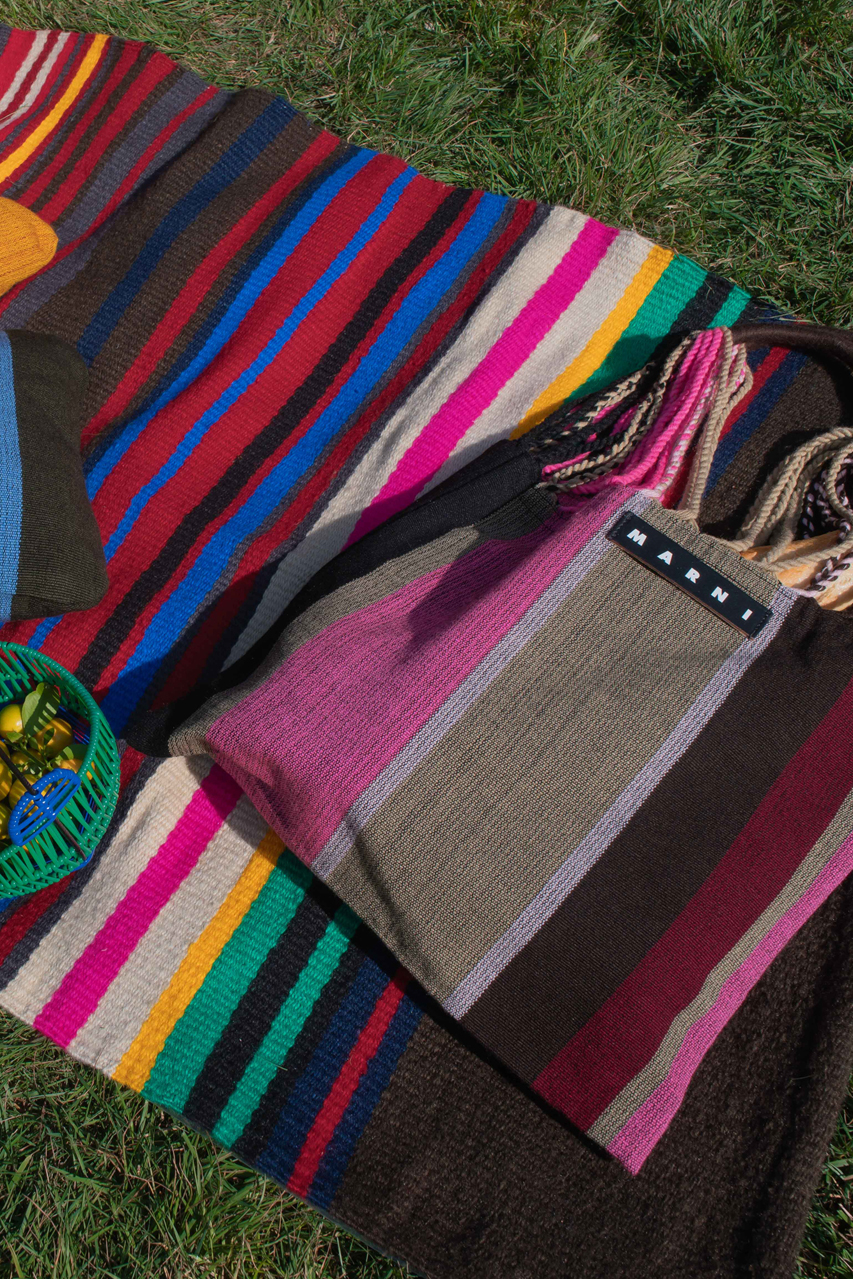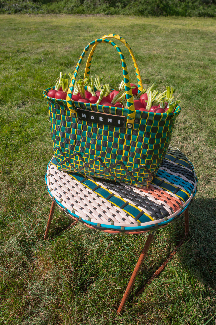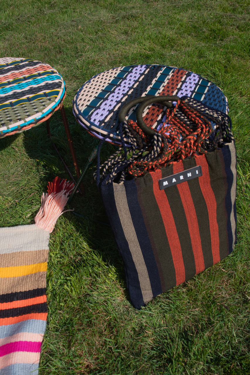 Все предметы созданы в ретроэстетике. Например, мягкие шерстяные сумки связаны крючком. Каждое изделие уникально, поскольку они сделаны колумбийскими мастерами, которые годами сотрудничают с Marni.