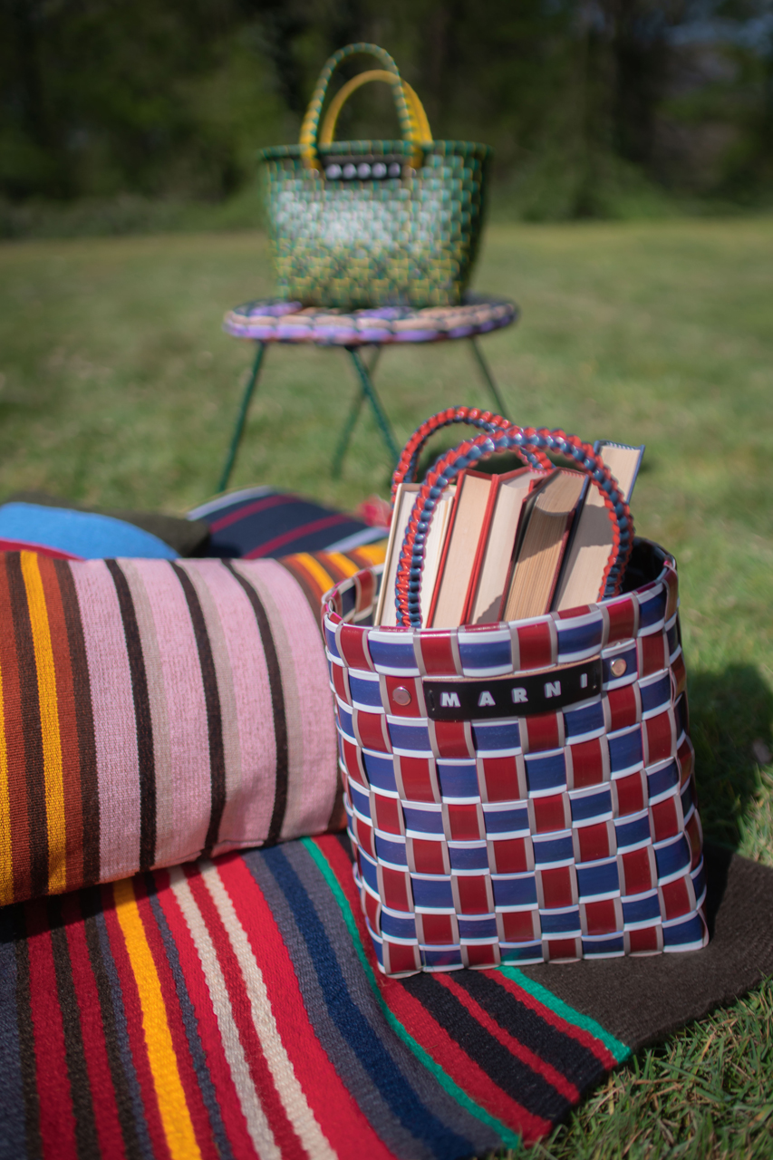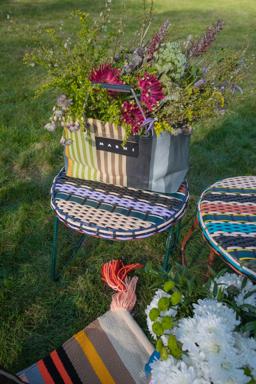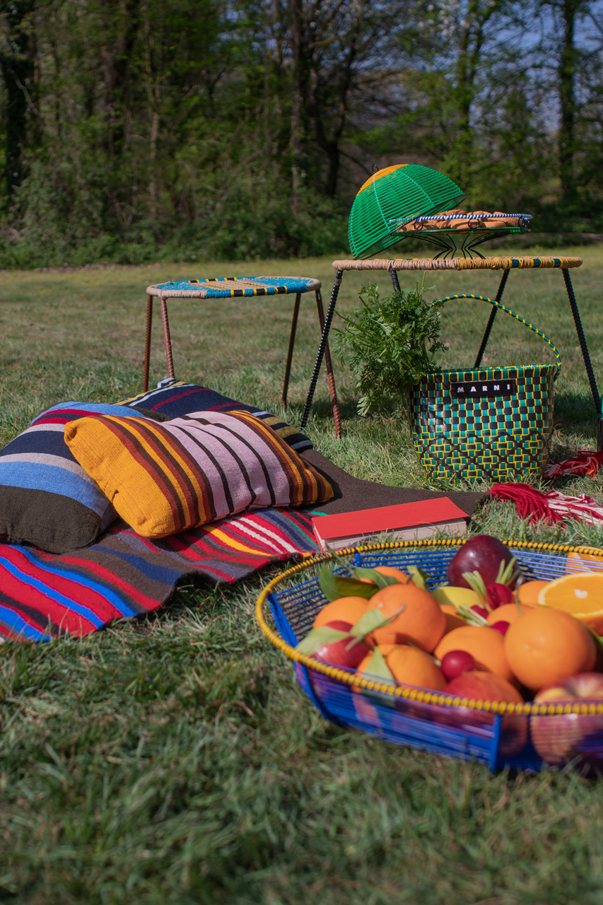 Marni выпустили коллекцию домашнего декора. В нее вошли серия сумок, табуреты, которые можно трансформировать в журнальные столики, подушки, коврики, корзины, подносы и подставки. Сумки из коллекции также можно использовать как горшки для растений.