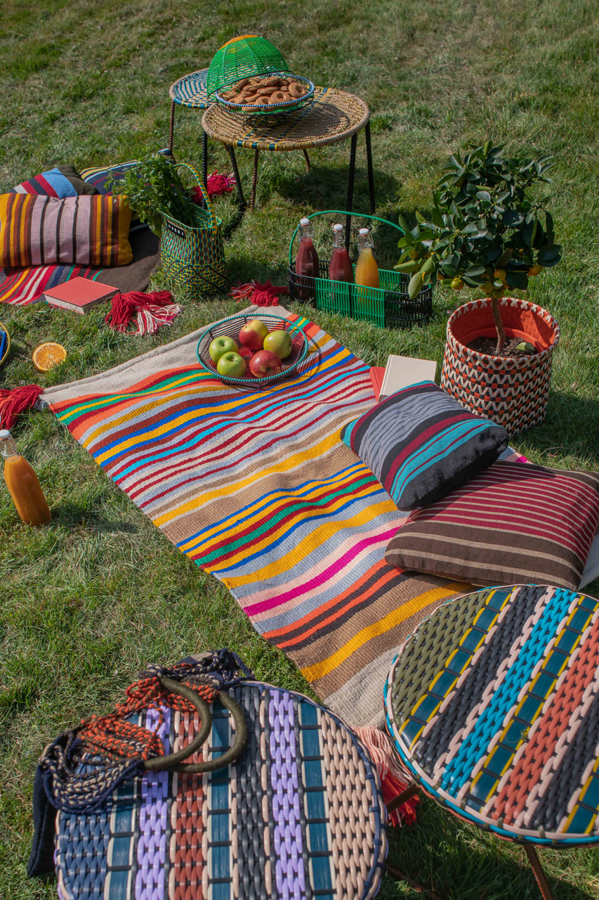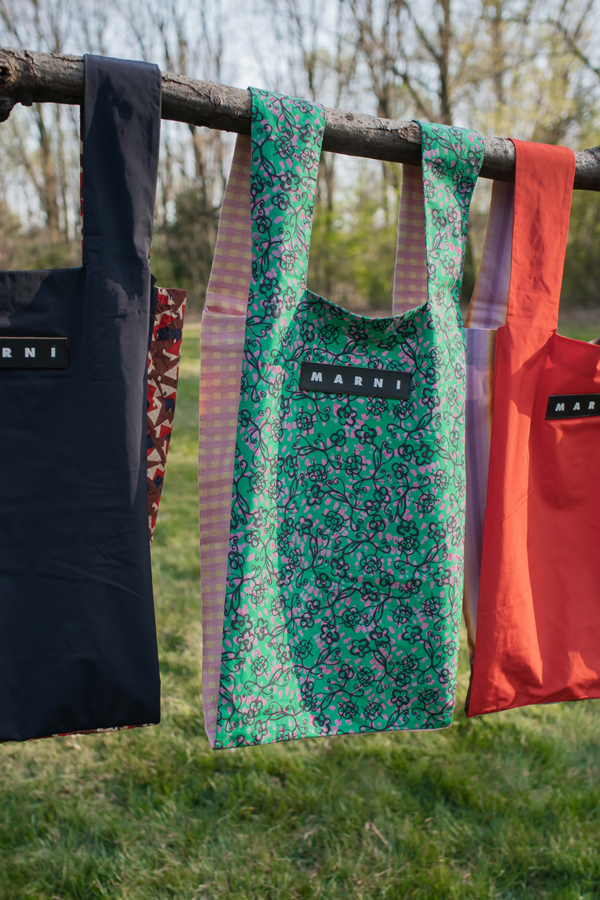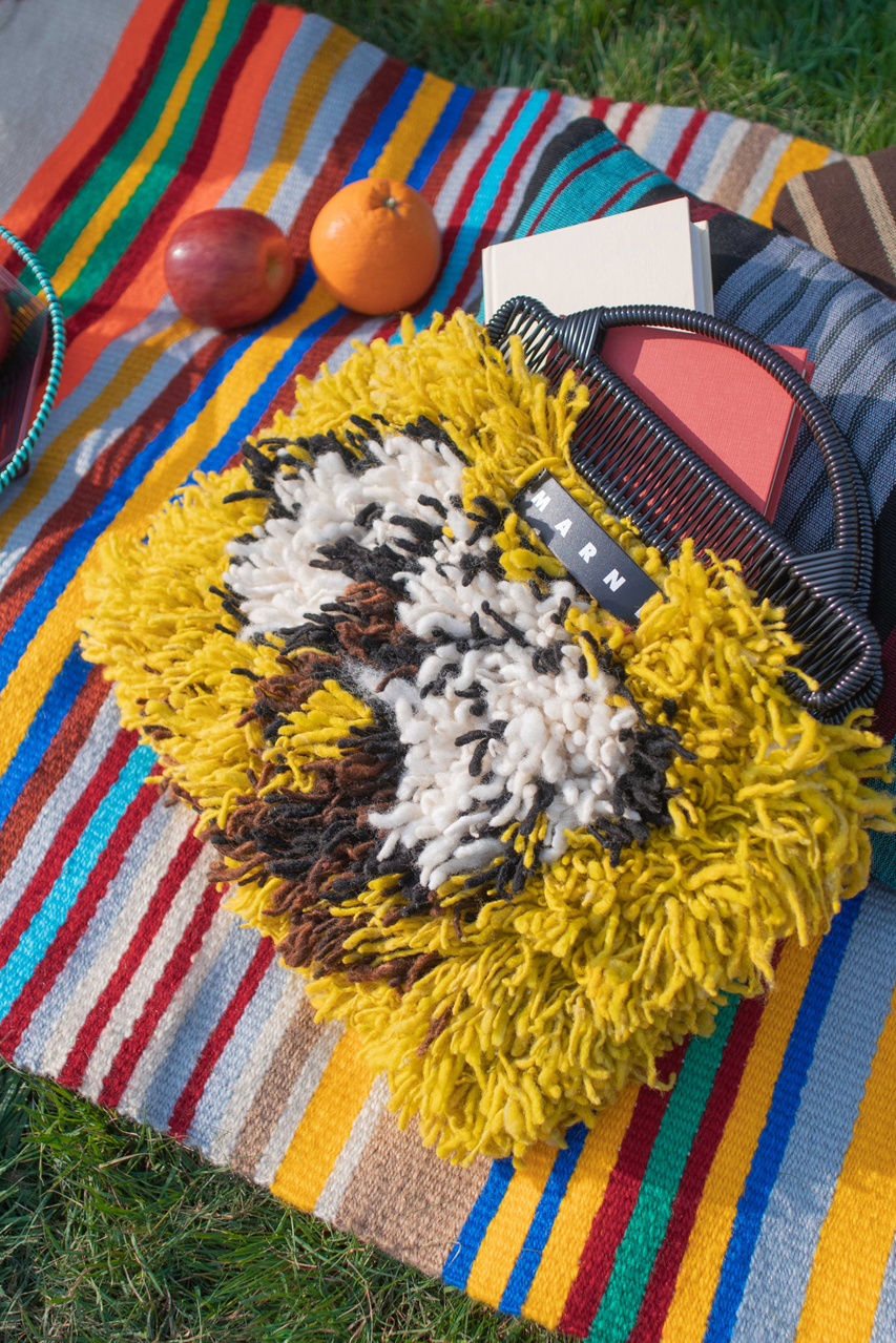 Marni выпустили коллекцию домашнего декора. В нее вошли серия сумок, табуреты, которые можно трансформировать в журнальные столики, подушки, коврики, корзины, подносы и подставки. Сумки из коллекции также можно использовать как горшки для растений.