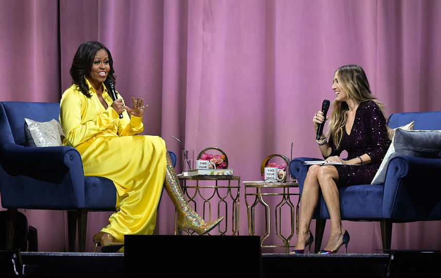 В смелом образе от Balenciaga Мишель появилась на презентации биографической книги “Становление”. На мероприятии в Нью-Йорке к ней присоединилась Сара Джессика Паркер — обойти Кэрри Брэдшоу во всем, что касается моды, не так уж и просто, но Мишель с этим справилась.