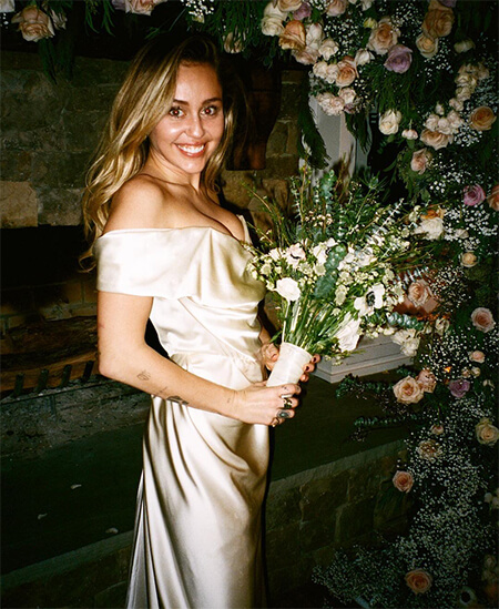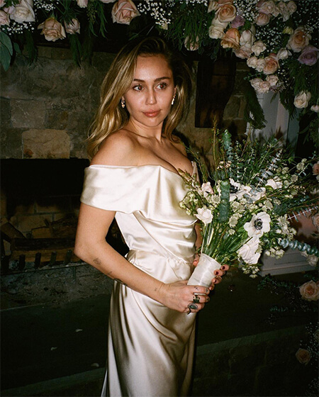 Майли Сайрус и Лиам Хемсворт встречались и расставались на протяжении 10 лет, пока не поженились в декабре прошлого года. Пара провела скромную семейную церемонию в доме Сайрусов в Теннесси. Для события Майли выбрала длинное шелковое платье от Vivienne Westwood цвета слоновой кости.