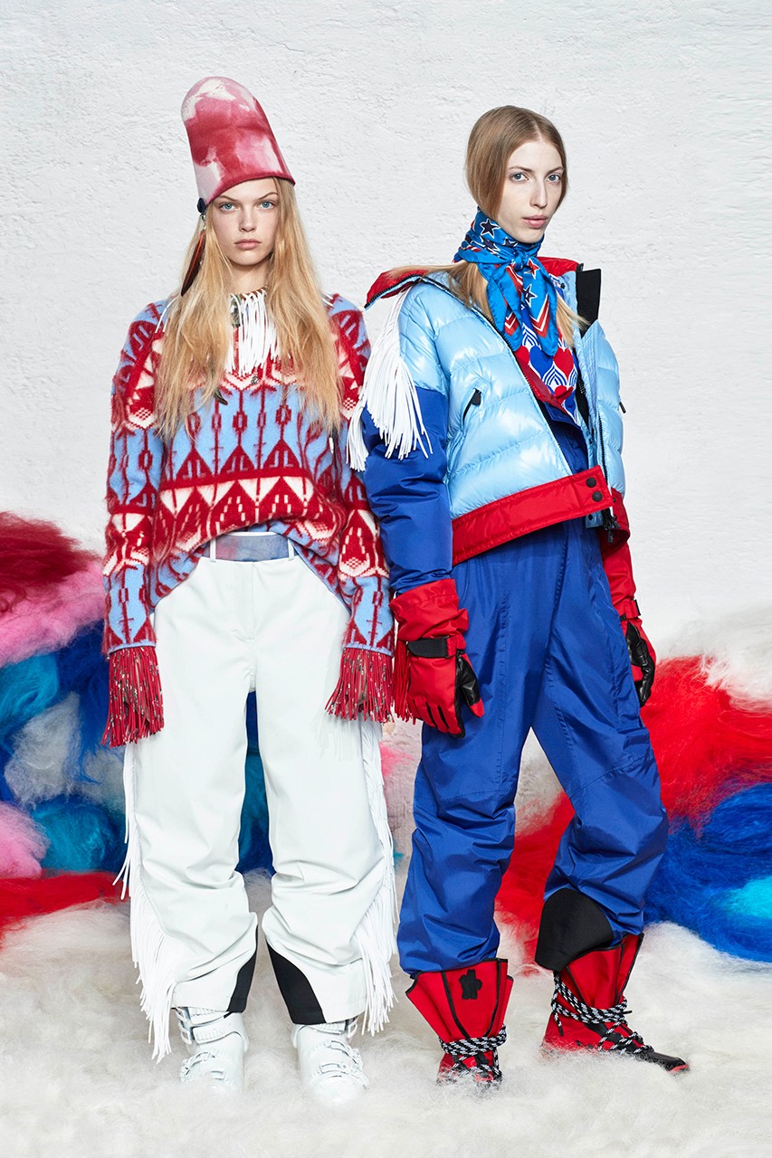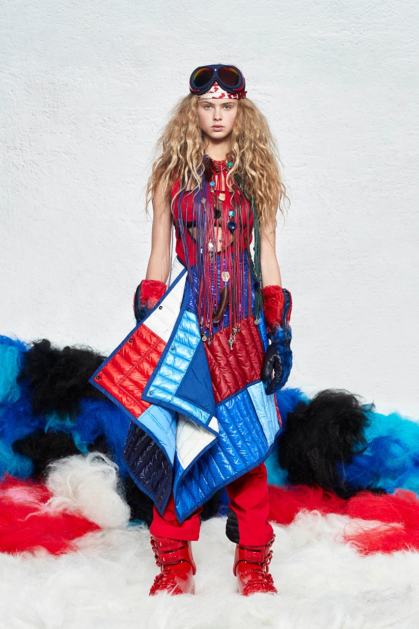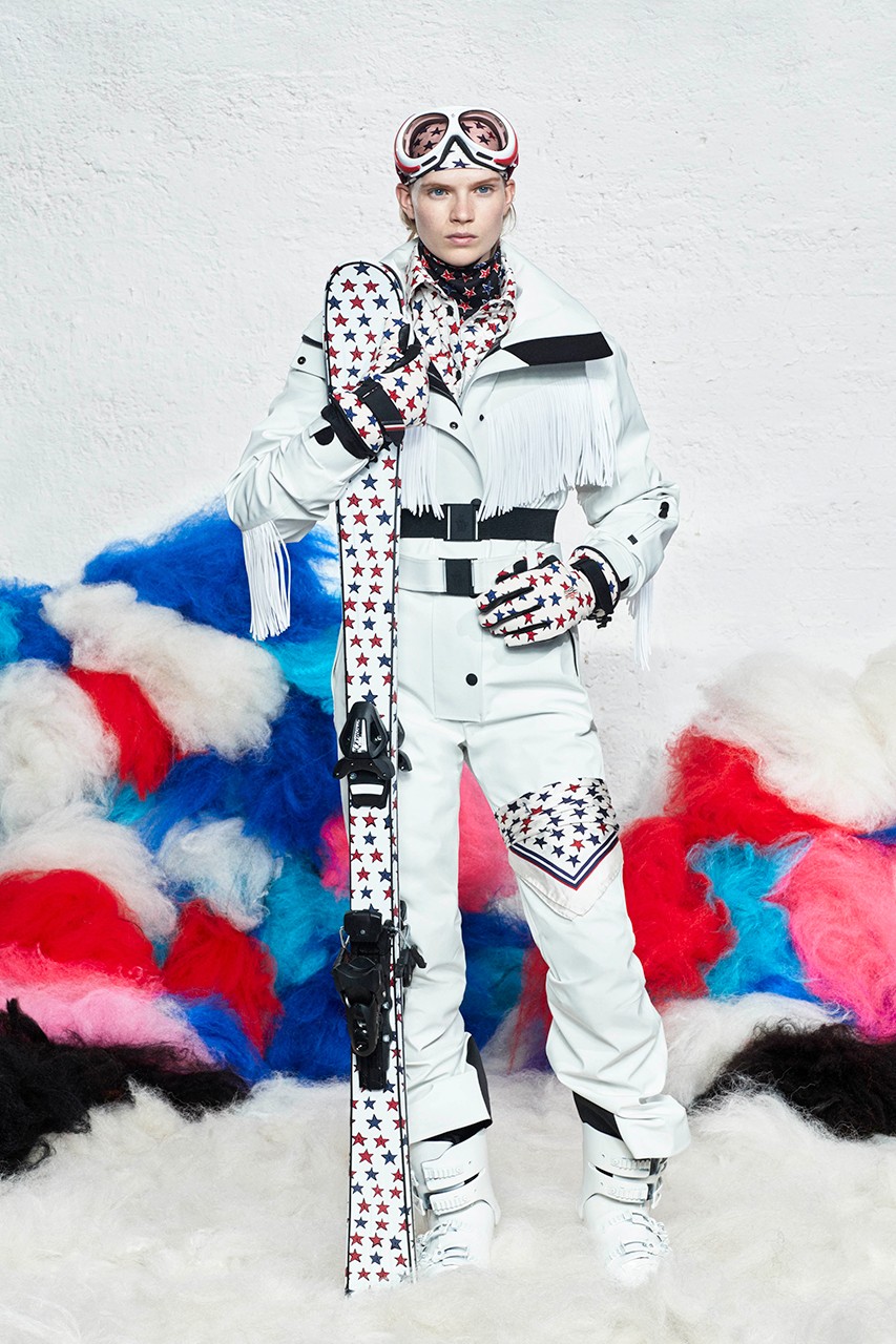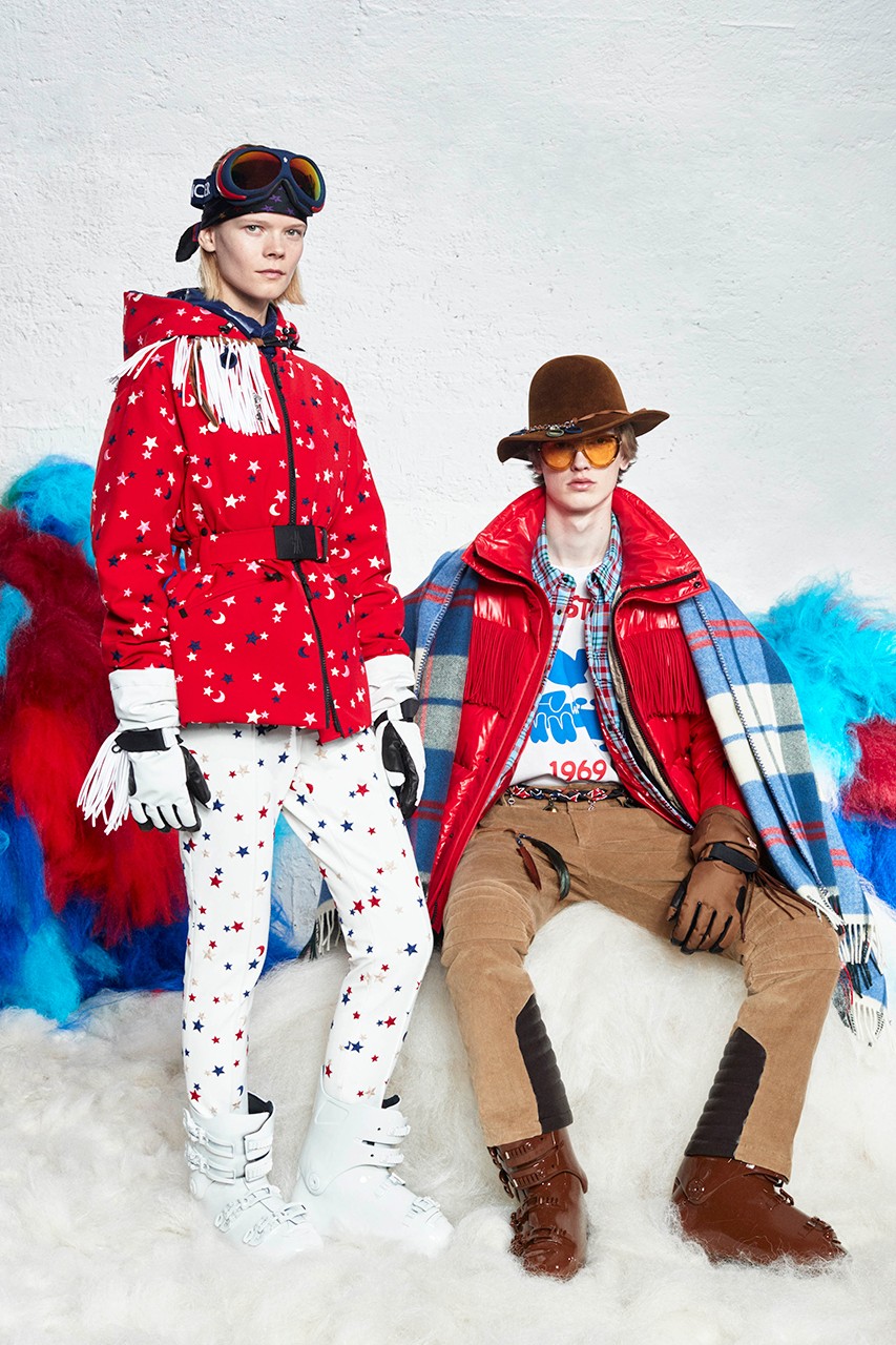 Вся одежда создана из инновационных материалов, что делает ее устойчивой к влиянию воды и ветра. Куртки, лыжные комбинезоны, шапки, перчатки, пончо и другая зимняя экипировка выполнены в эстетике 70-х годов. В коллекции присутствуют тай-дай-мотивы, техника петчворк, психоделические и цветочные принты.