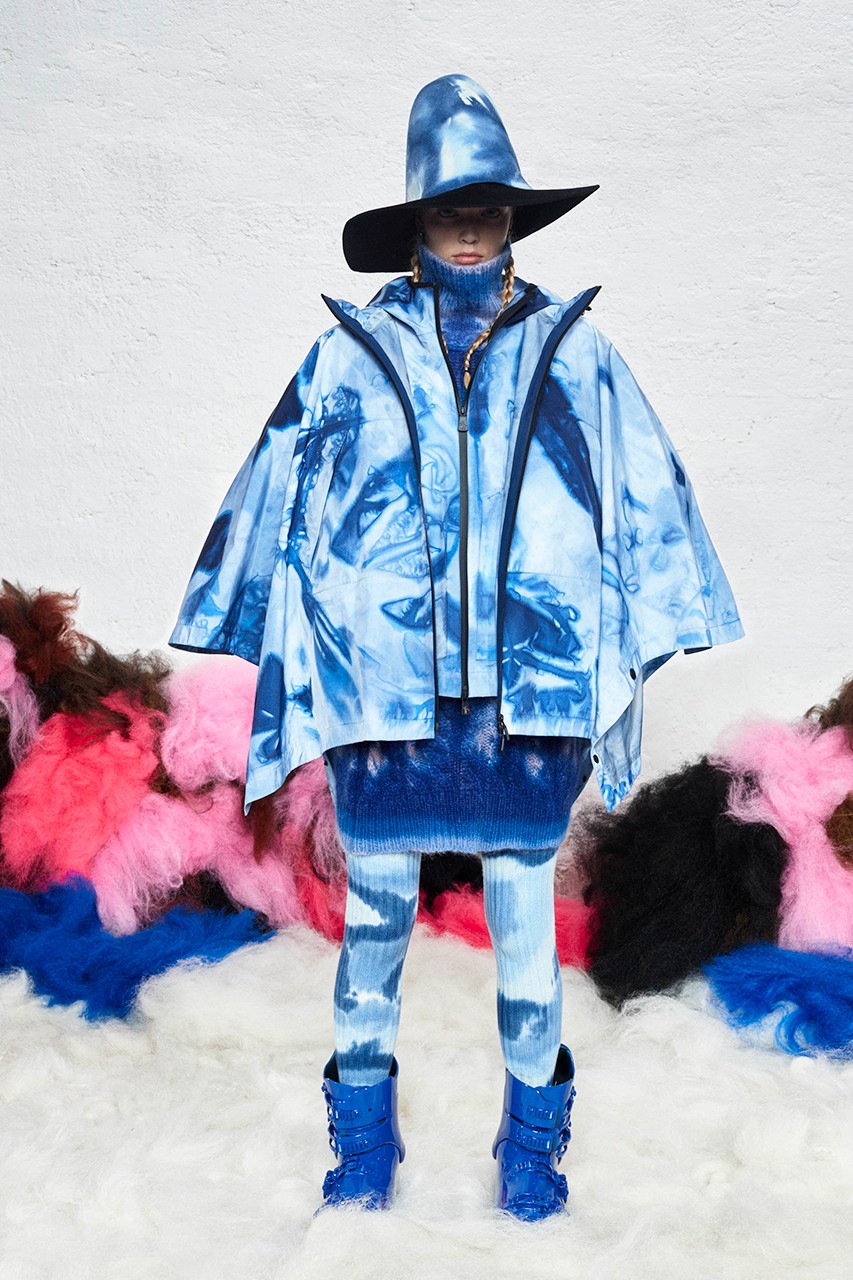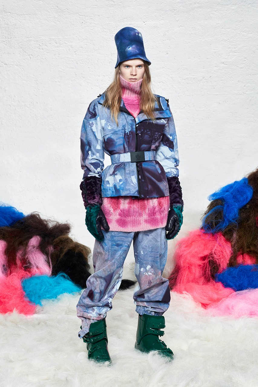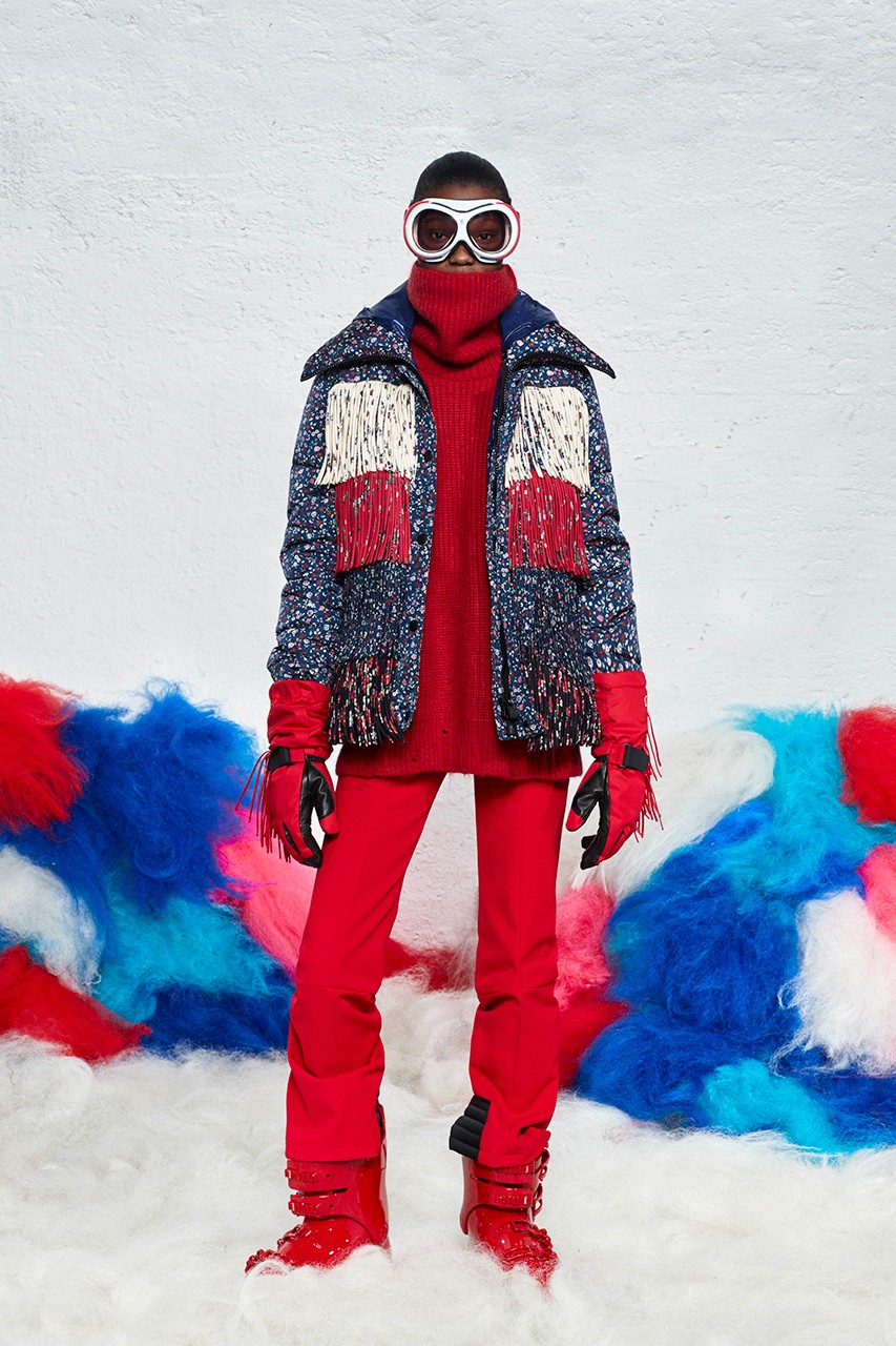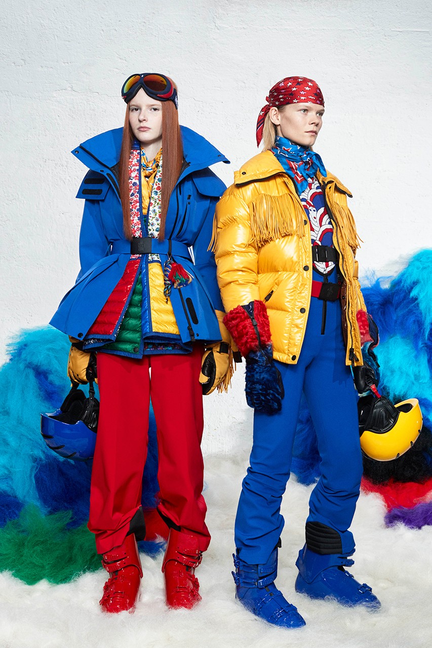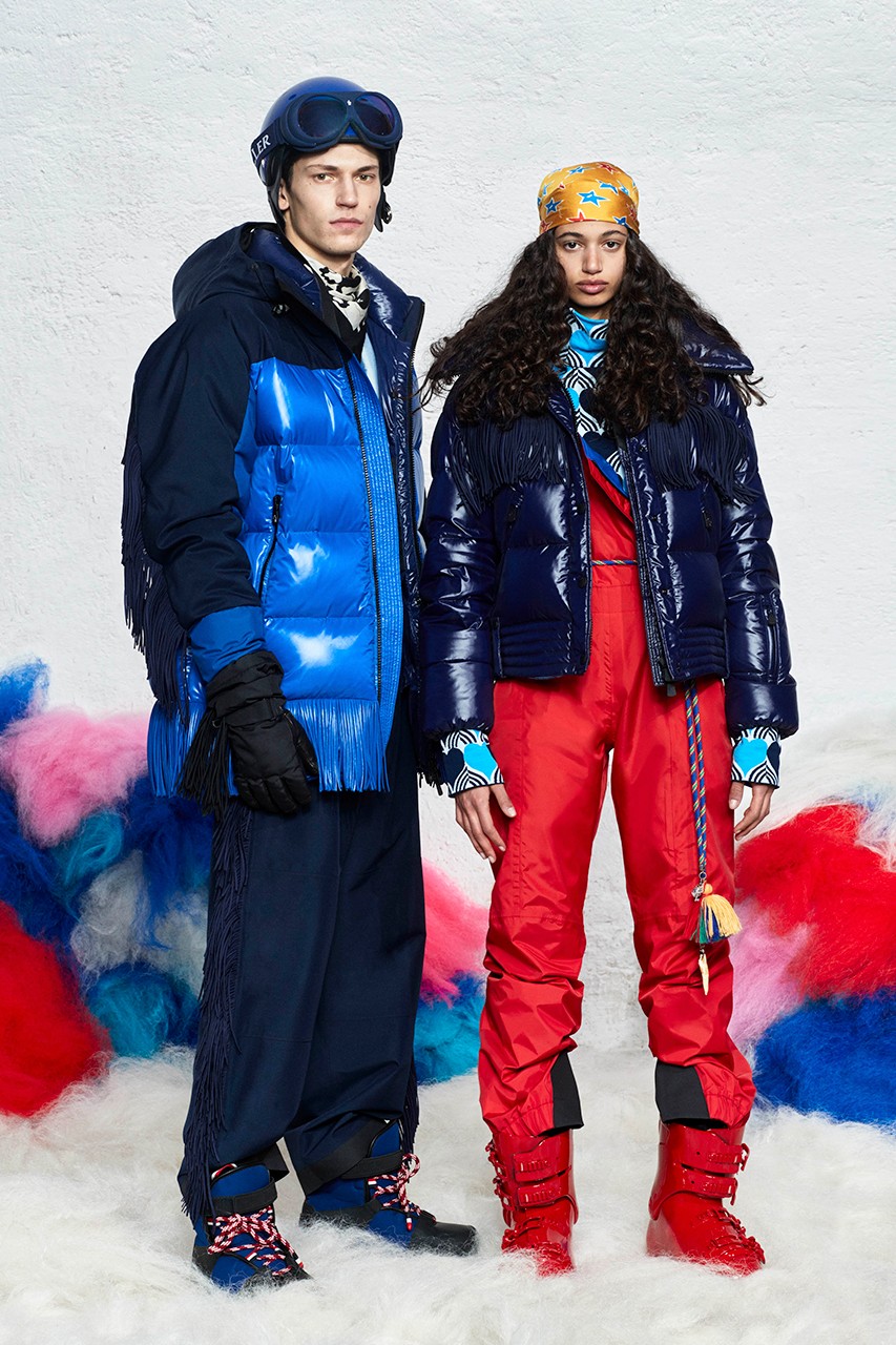 Вся одежда создана из инновационных материалов, что делает ее устойчивой к влиянию воды и ветра. Куртки, лыжные комбинезоны, шапки, перчатки, пончо и другая зимняя экипировка выполнены в эстетике 70-х годов. В коллекции присутствуют тай-дай-мотивы, техника петчворк, психоделические и цветочные принты.